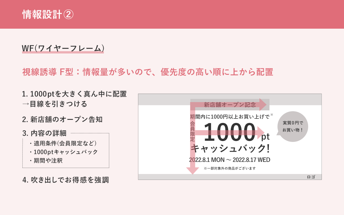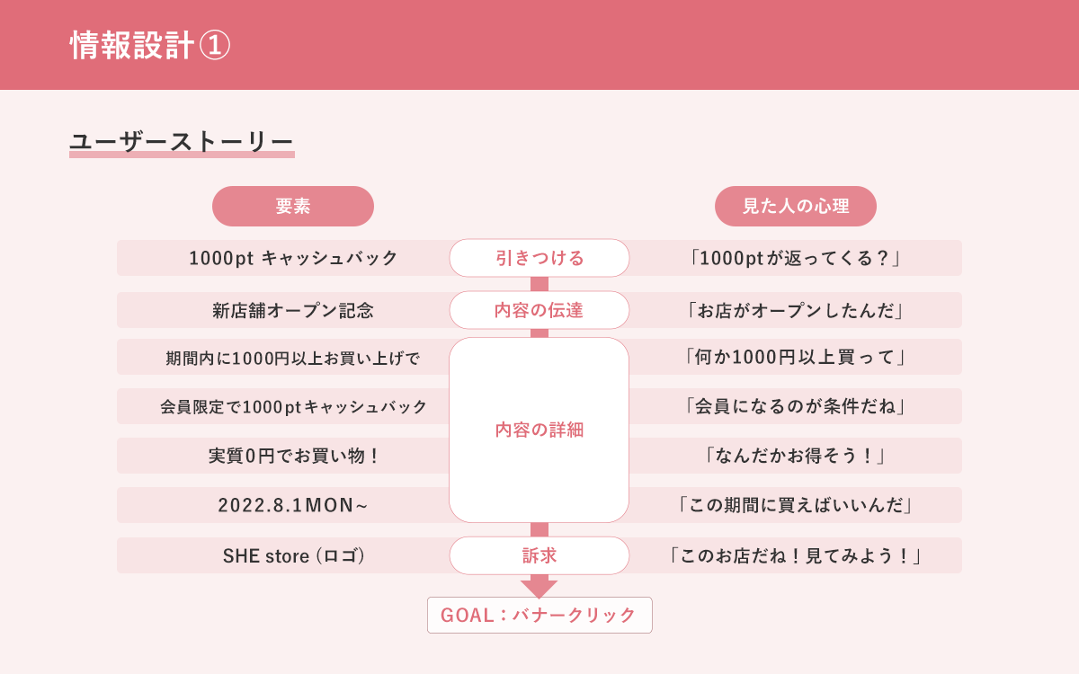 ユーザーがキャンペーンバナーを見た際に「どこに目がいくのか」また「何を感じるのか」実在するキャンペーンバナーを参考にしながら設計しました。
