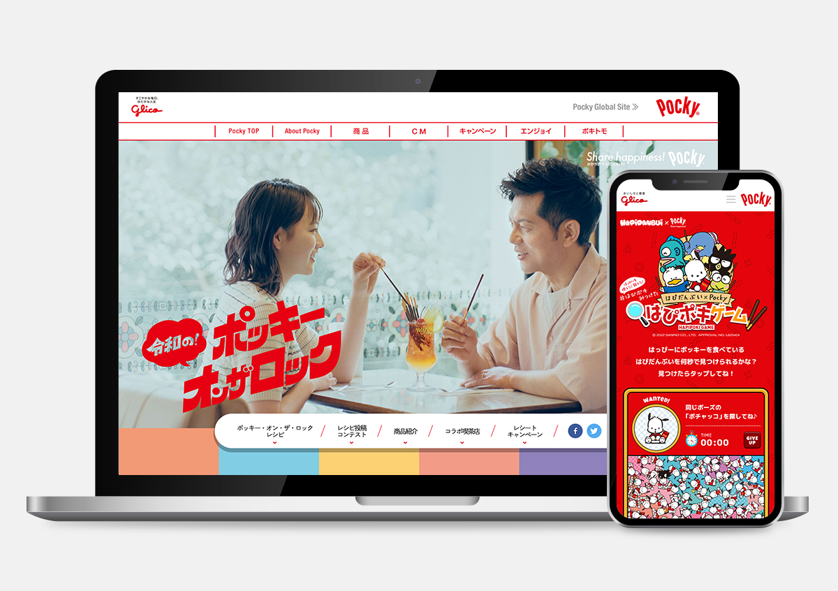 2022.2〜2023.3までのポッキーデジタル施策。プランナーと共に企画を出し、UI、デザインに関わる全てのアートディレクションを担当。