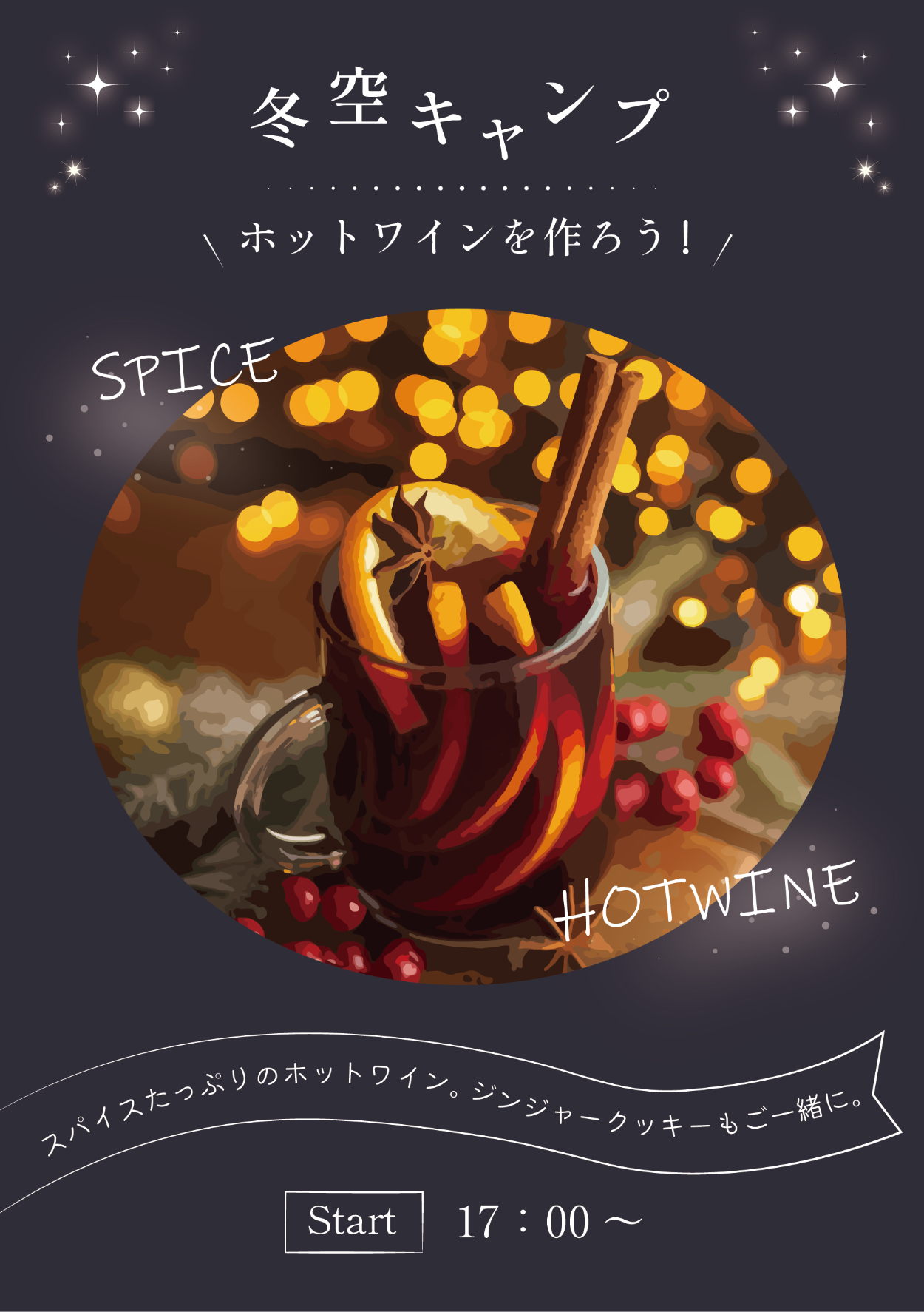 宿泊者にホットワイン作りのイベントを周知するフライヤーです。