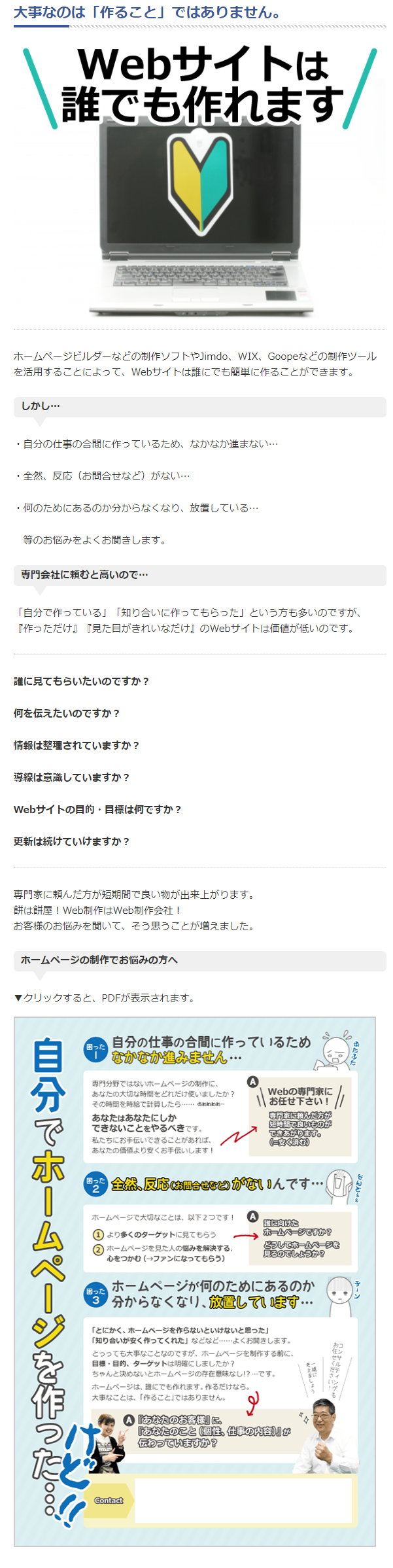 Webサイトをはじめて自作したのは17歳の時です。何件もの制作に関わり「Webサイトは作れば良いというわけではないなぁ」と思いました。何を伝えたいのか?更新はできるのか?……お話を聞いてWebサイトを作らないという結論にいたることもあります。