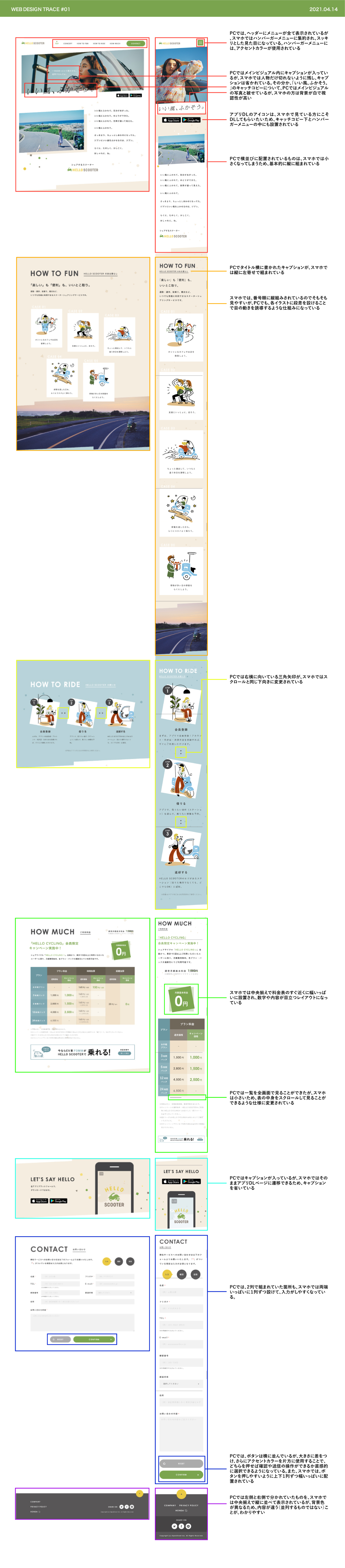 SHElikes MULTI CREATOR PROJECTにて、WEBページトレース課題に取り組みました。デザインガイドラインの作成と、PCとスマホで異なるデザインやレイアウトの分析を行い、分析結果をまとめました。(所要時間:約15時間)