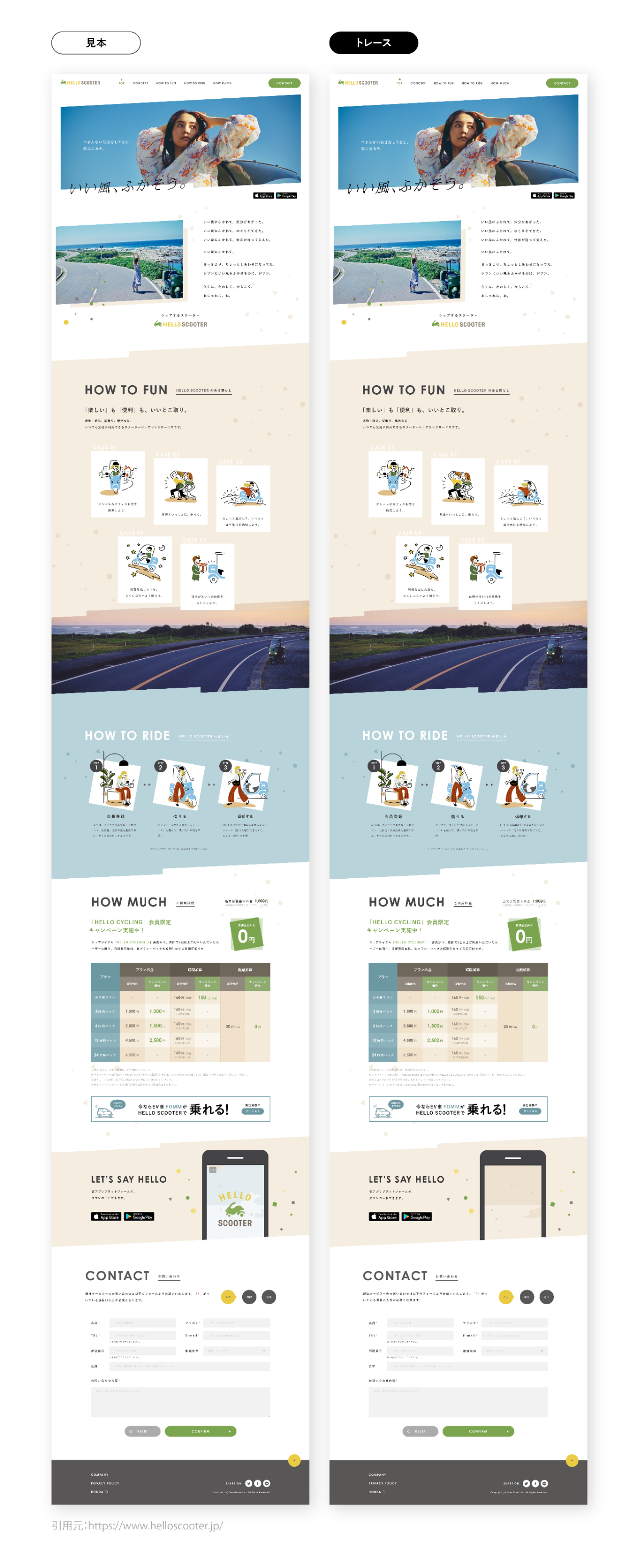OpenStreet 株式会社が提供する「HELLO SCOOTER」のLPをトレースしました。