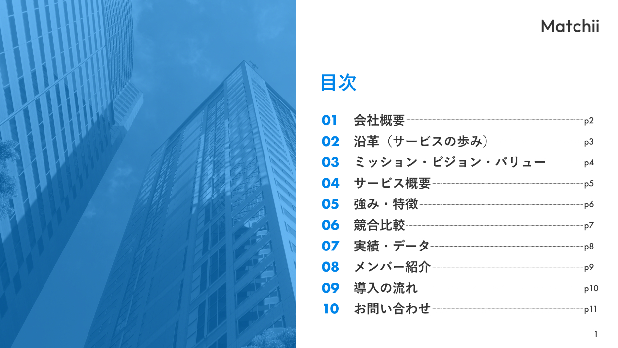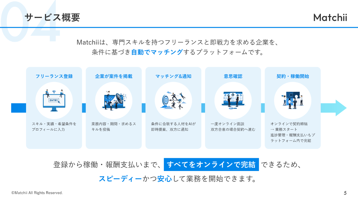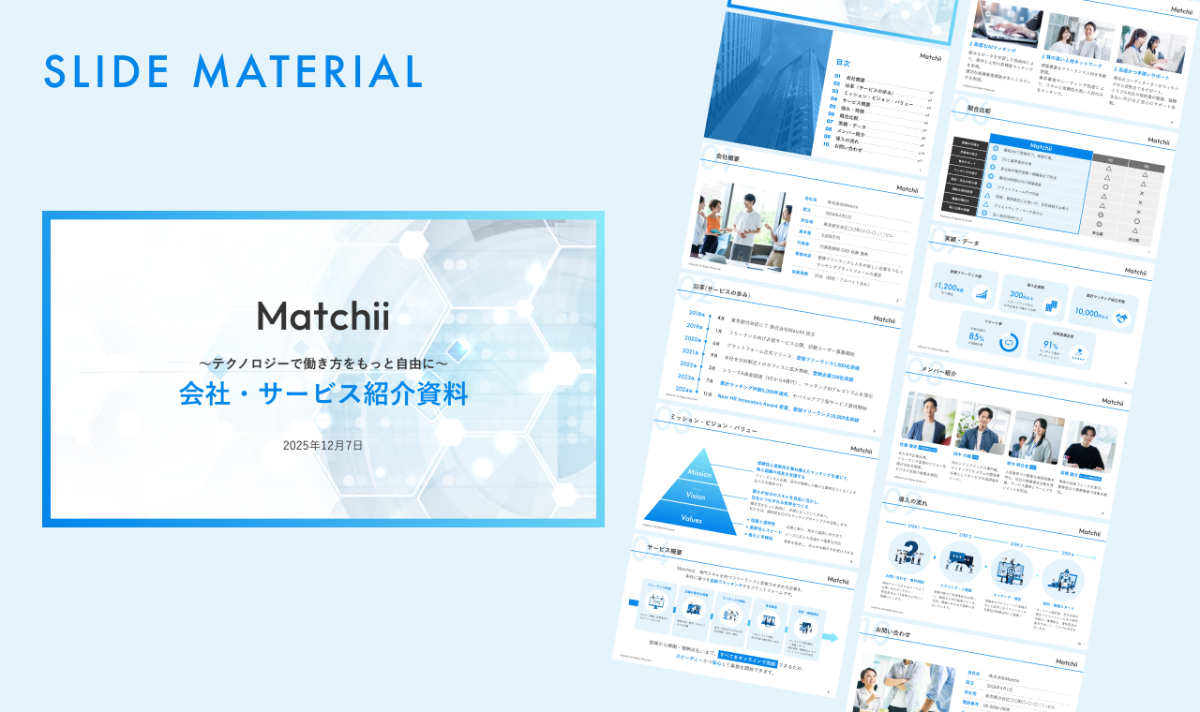 企業の人事・経営層に向けて自社サービスを説明し、マッチングプラットフォームの導入を検討してもらうための資料