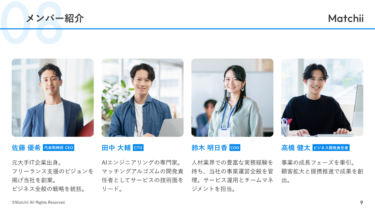 フォントは、汎用性・可読性を意識し、和文は「游ゴシック」、英数字はMatchiiのロゴにも使われている「Futura」を選定しました。