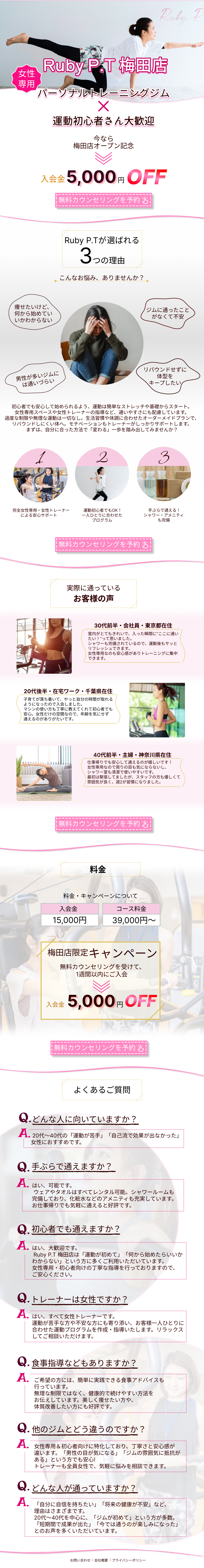LP:【女性専用パーソナルジム「Ruby P.T 梅田店」】