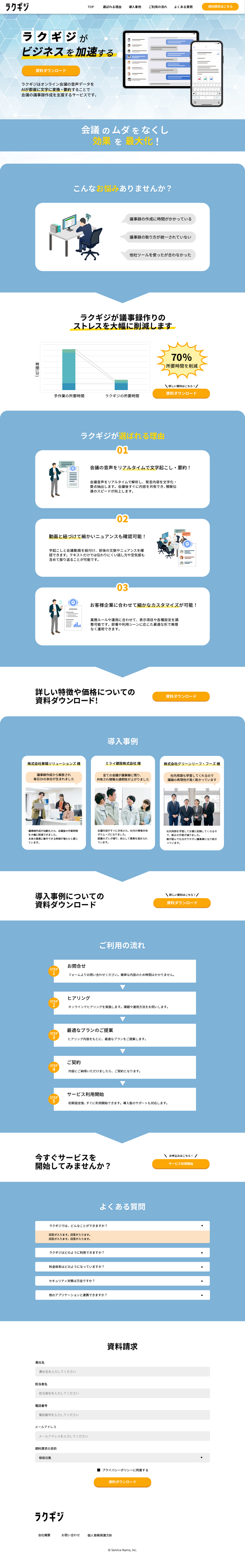 AI議事録「ラクギジ」LPをPC版で作成しました。