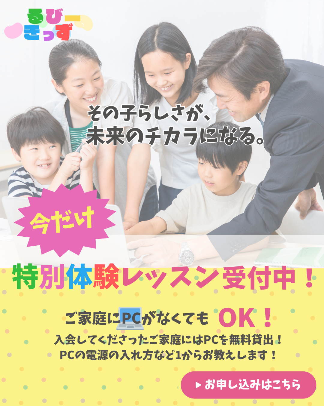 ペルソナ:6歳~12歳の小学生のお子様とその親御様向けのPC教室