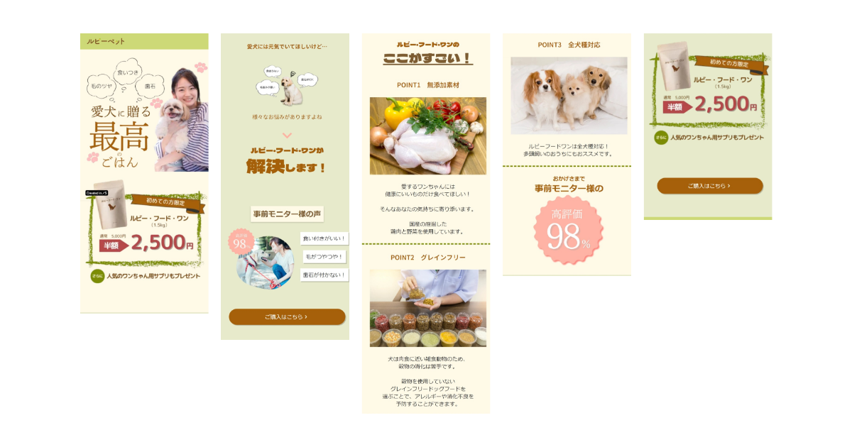 ペットのためにドッグフードにもこだわる愛犬家をターゲットに作成しました。
