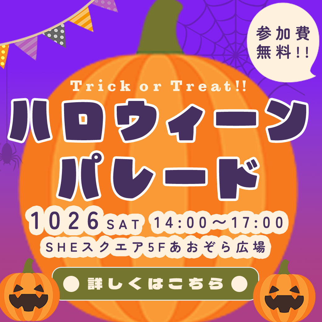 └大型商業施設「SHEスクエア」で行なうハロウィンパレードへの集客