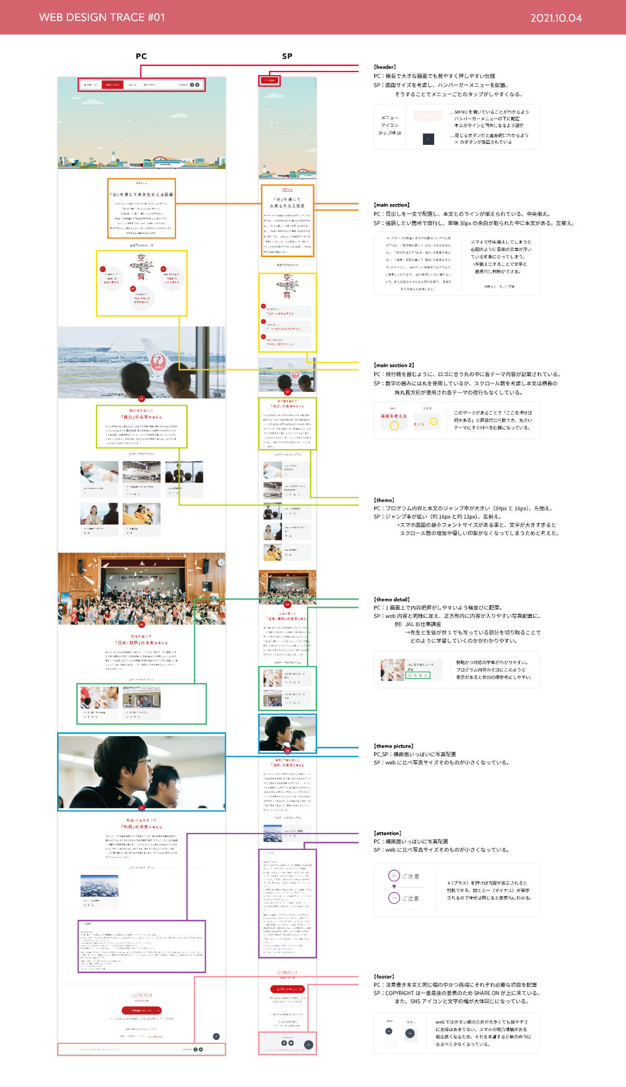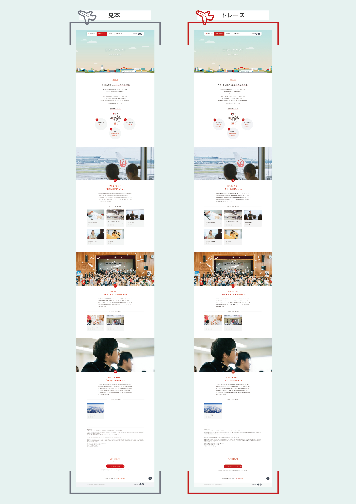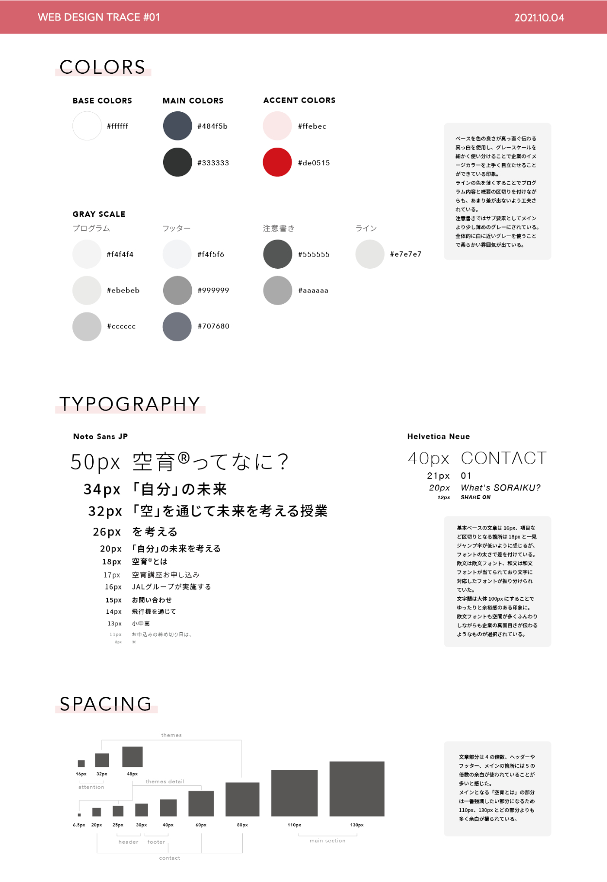 【SHElikes MULTI CREATOR COURSE 課題】 JALさんのLPをトレース、デザインガイドライン制作、PCとスマホのデザインを比較・分析してまとめました。 制作時間:30時間