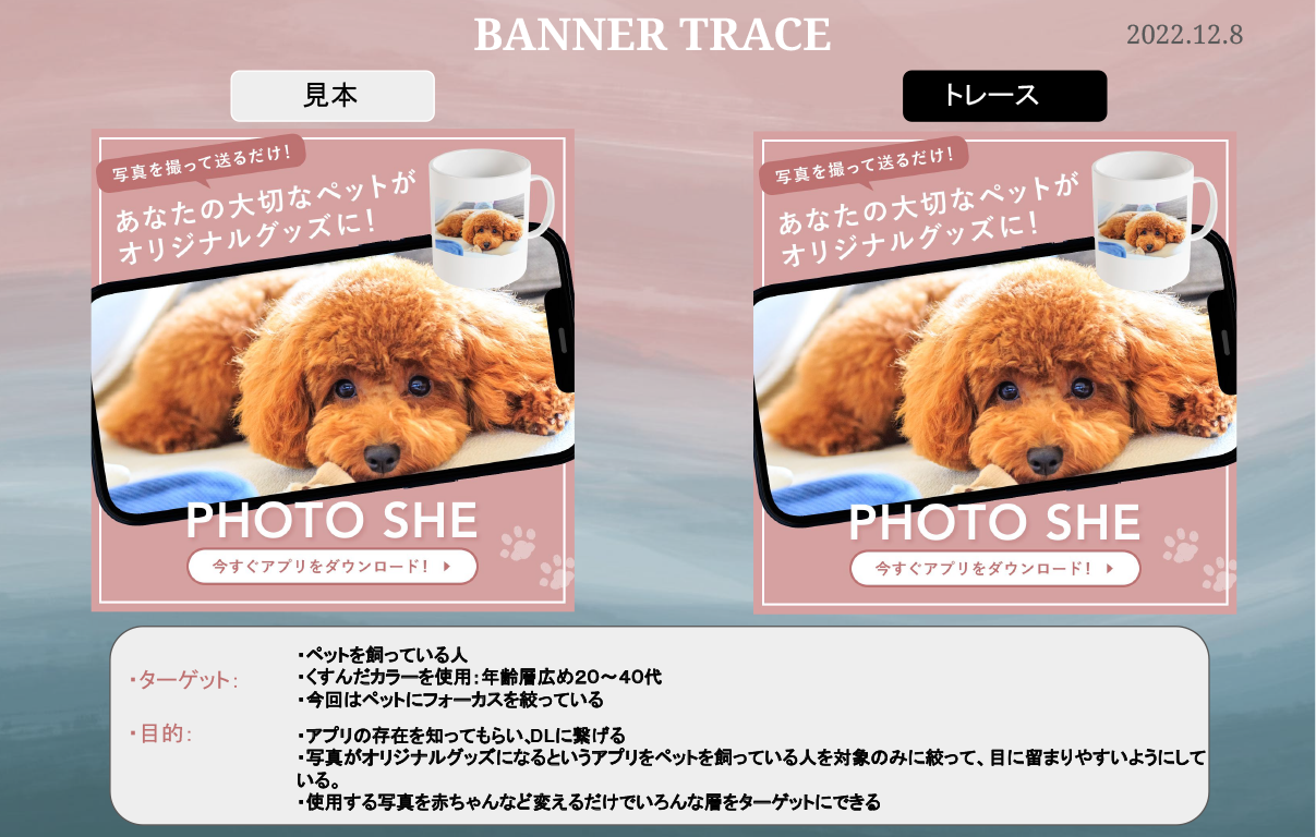 ①トレースしたバナーと、そのターゲット・目的