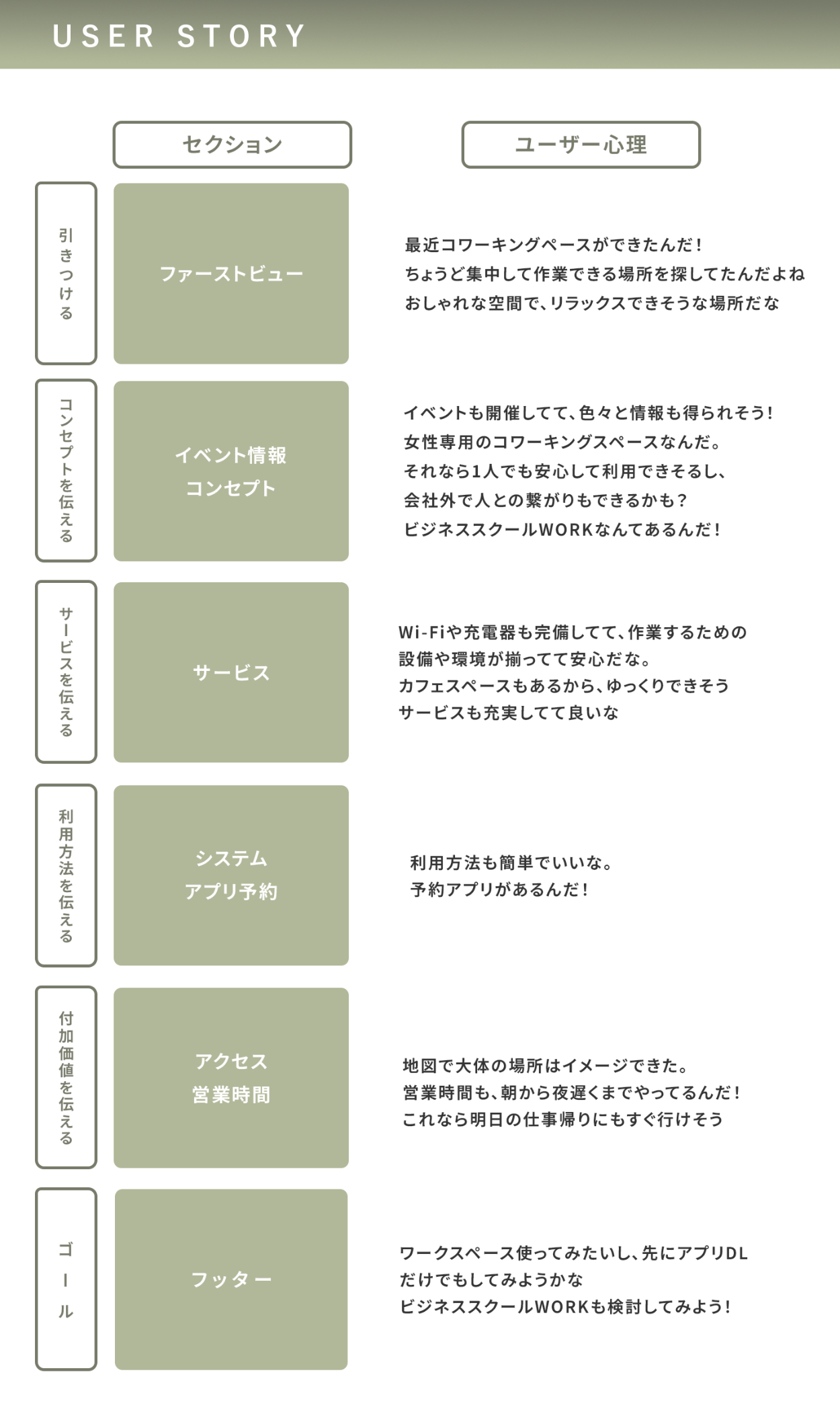 ペルソナをもとにユーザーが行動を起こすまでの心情を考え、伝える情報の優先度を整理
