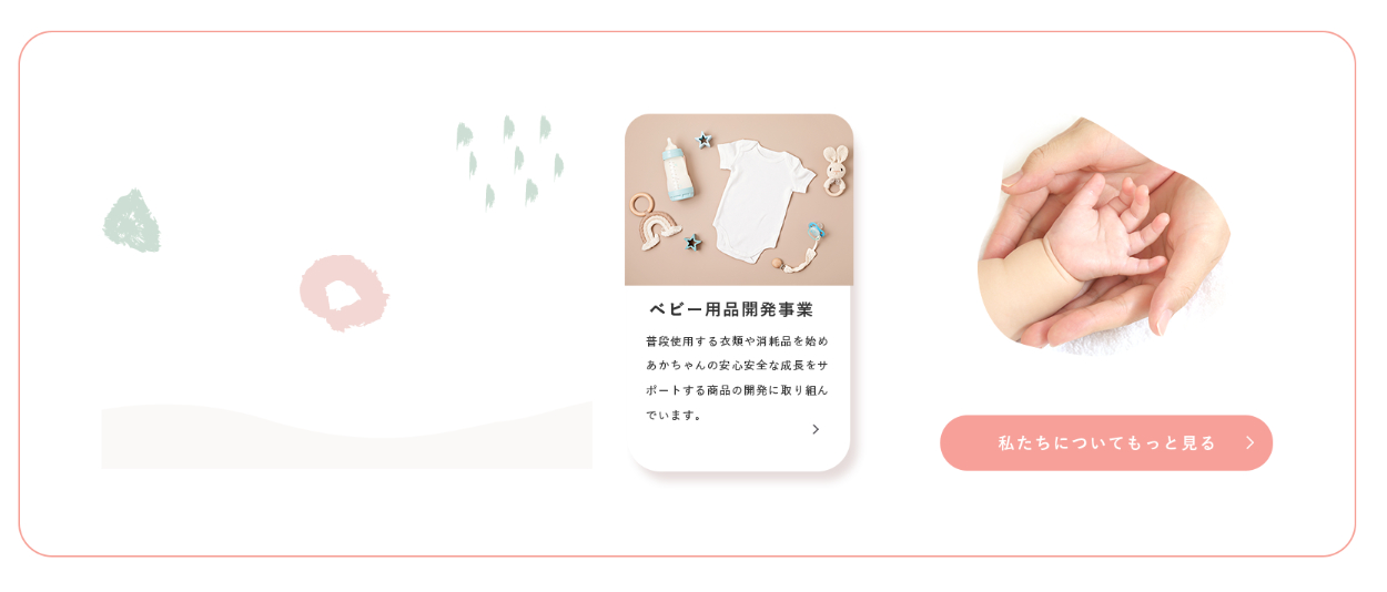 赤ちゃんのイメージのデザインにしすぎてしまうと採用サイトでなく、コーポレートサイトになってしまうため、使用する画像はサイト訪問者に企業コンセプトが伝わり、働くイメージが想像できるような画像を使用しました。