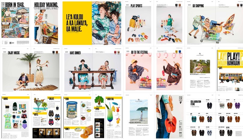 ブランド発祥地であるハワイに関連するコラムを集めたカルチャーページ。フード、カクテル、ホテル、コーヒーなど、さまざまな情報を切り抜き写真と印象的なイラストをMIXして掲載したバラエティ豊かなページ。