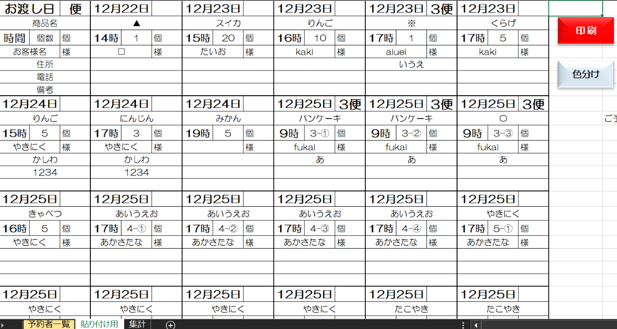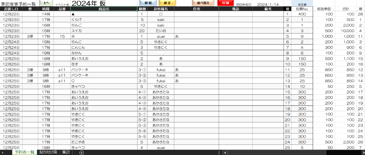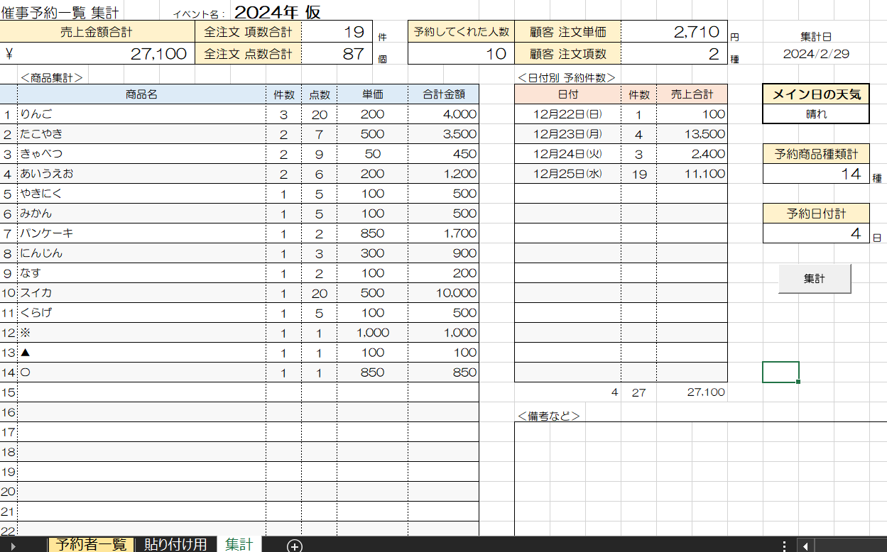 【予約商品売上集計シート】