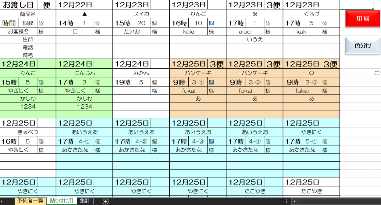 「顧客別」で伝票が色分けされます。