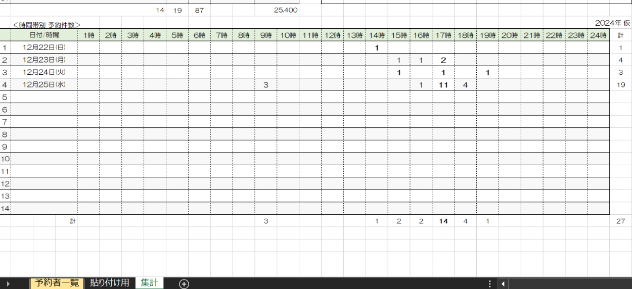 ・どの日に、どれだけの人数が、どの時間帯に
