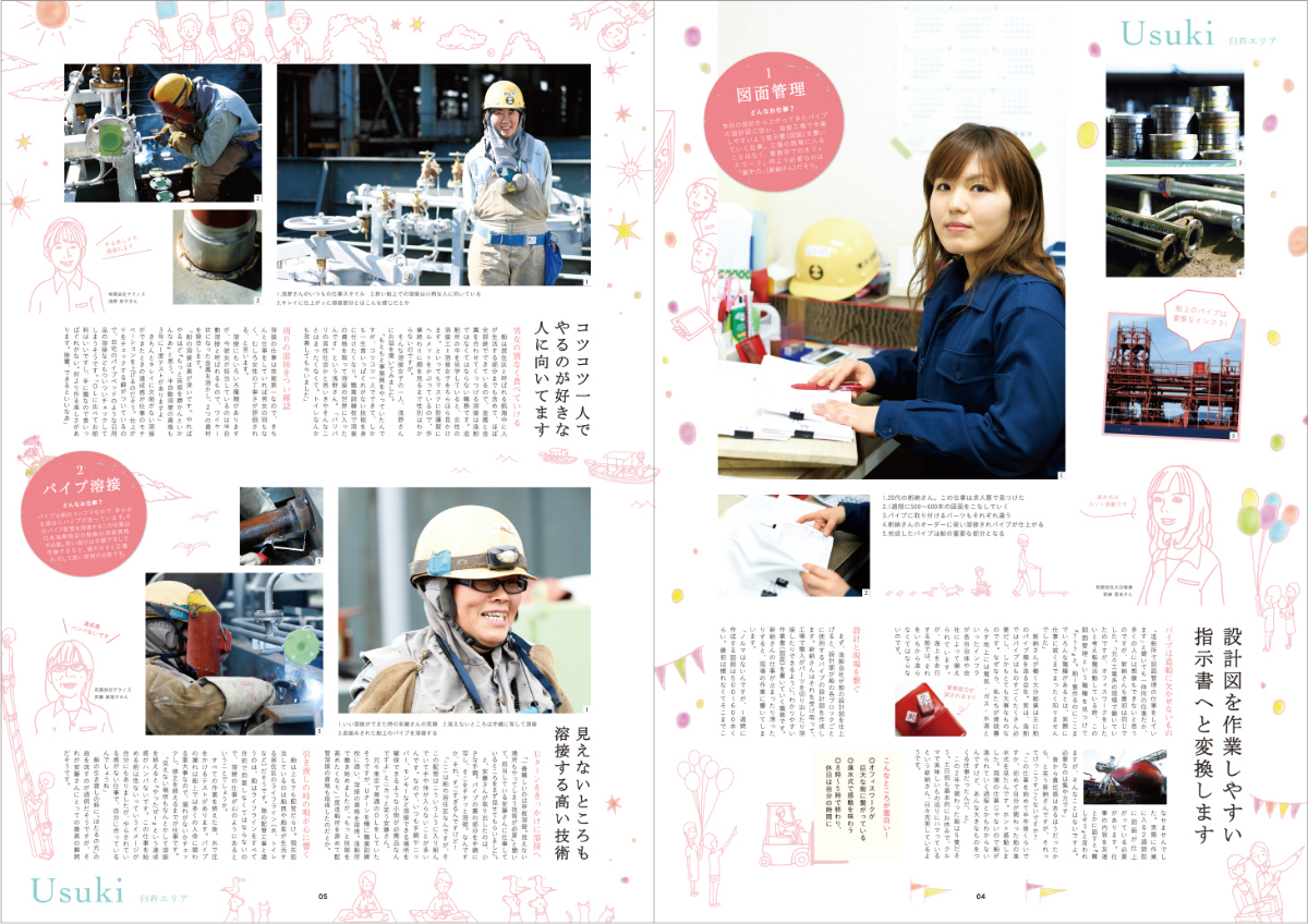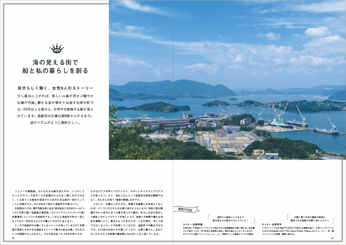 Life and Work cosaeru_sagi Graphic/Web Designer OVERVIEW 毎年発行の造船所で働く女性にフォーカスを当てたフリーペーパー Life and work 2019Life and Work 2018