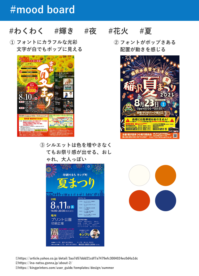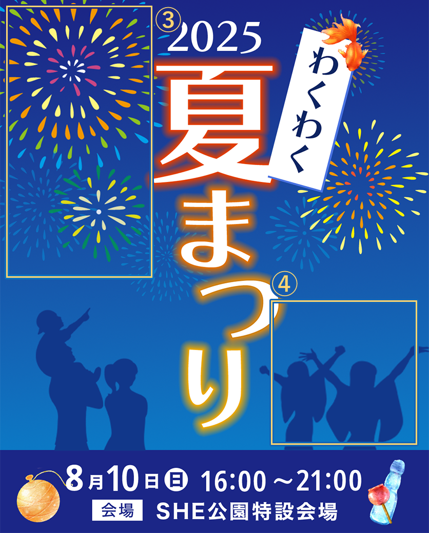 ③誰が見ても「お祭り」をイメージできるよう、花火のあしらいを上部に配置した。