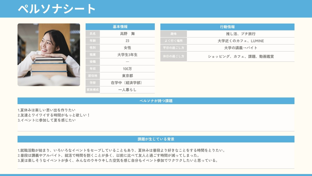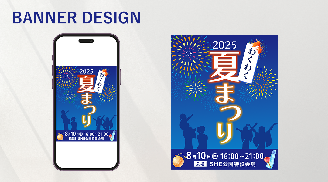 【スクール内のコミュニティ課題で、架空夏祭りのInstagram開催告知用バナーを作成しました。制作要件より、ペルソナ設定、ワイヤーフレーム作成、バナー制作を行いました。/制作期間:1週間/制作時間:13時間/使用ツール:Photoshop】