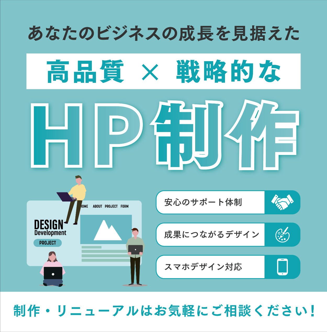 主メッセージ(HP制作)を大きく配置し、一目でサービス内容が伝わる設計