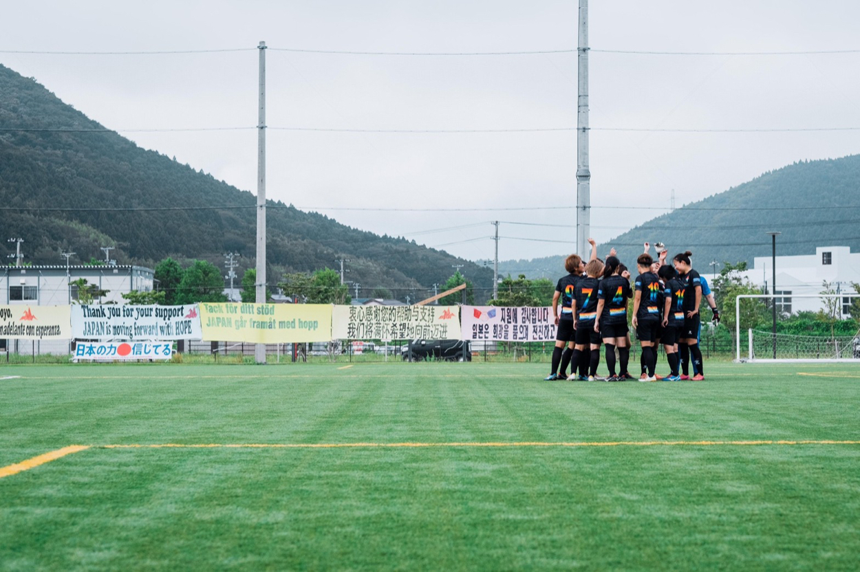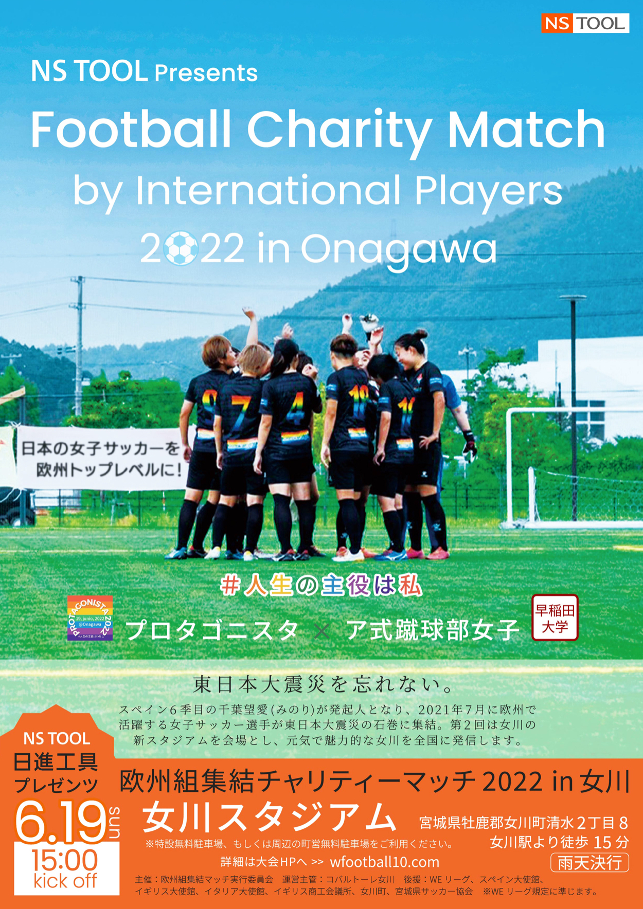 【実案件】サッカーチャリティーマッチの周知チラシ kana フリーランスデザイナー OVERVIEW 震災の復興支援を兼ねたチャリティーマッチイベントのチラシ作成を担当させていただきました。 YEAR 2022 写真の画素を上げ、色彩と明るさを調整しました。(※Original Photo参照)プレイヤーに被っていたポールを消し、韓国語の横断幕を日本語の横断幕に変更しました。(※Original Photo参照)※Original Photo