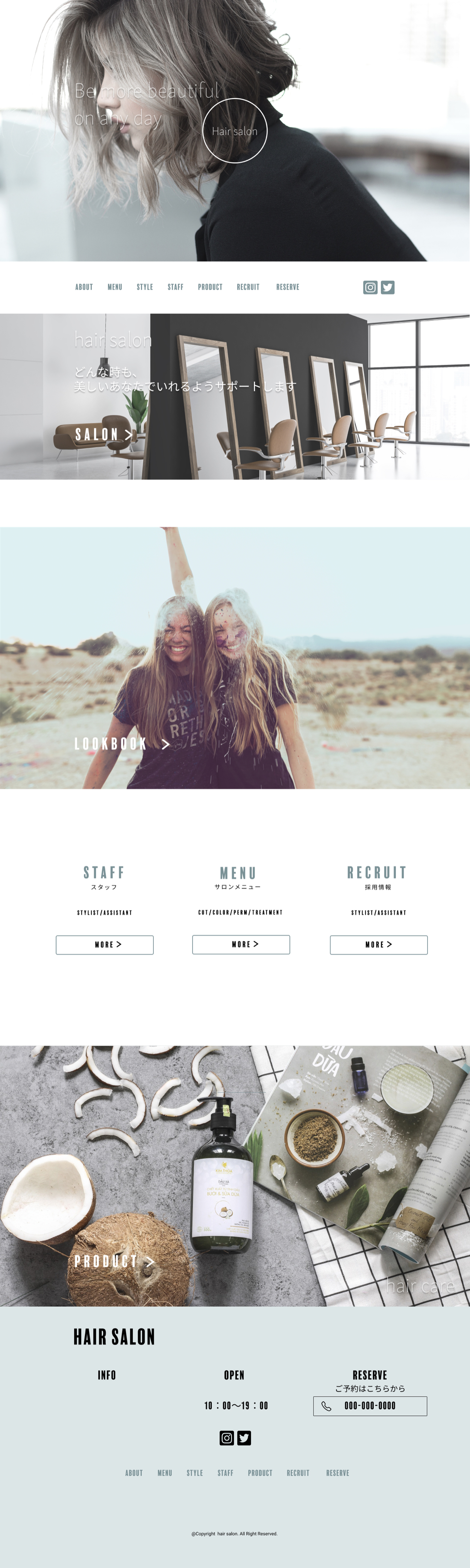 大人女性をターゲットにした架空の美容室のHPデザインを作成しました。