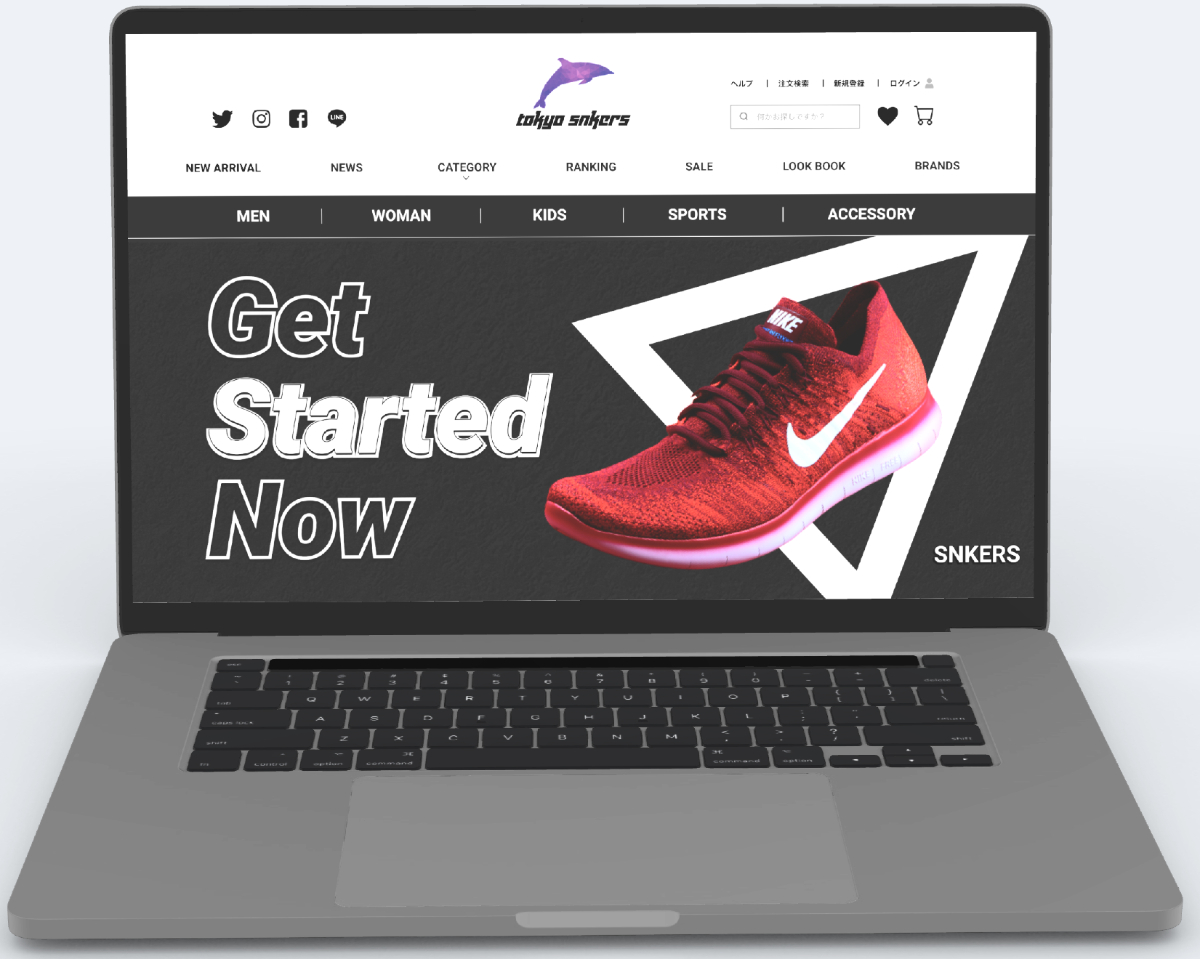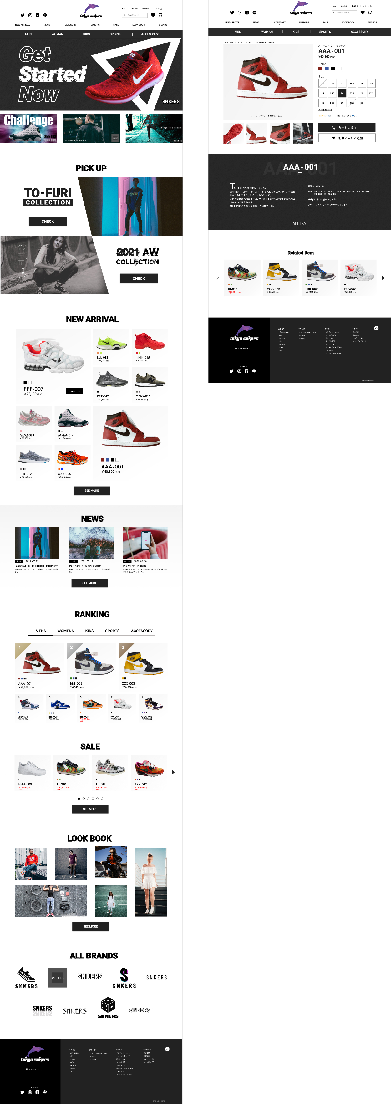 特に商品を掲載している部分(NEW ARRIVAL,RANKING,SALE)は白を基調とした配色で作成しました。商品一つ一つに薄いグラデーションを敷くことでアイテムが区別できるとともに、右下からスポットライトが当たっているような特別感を表現しました。