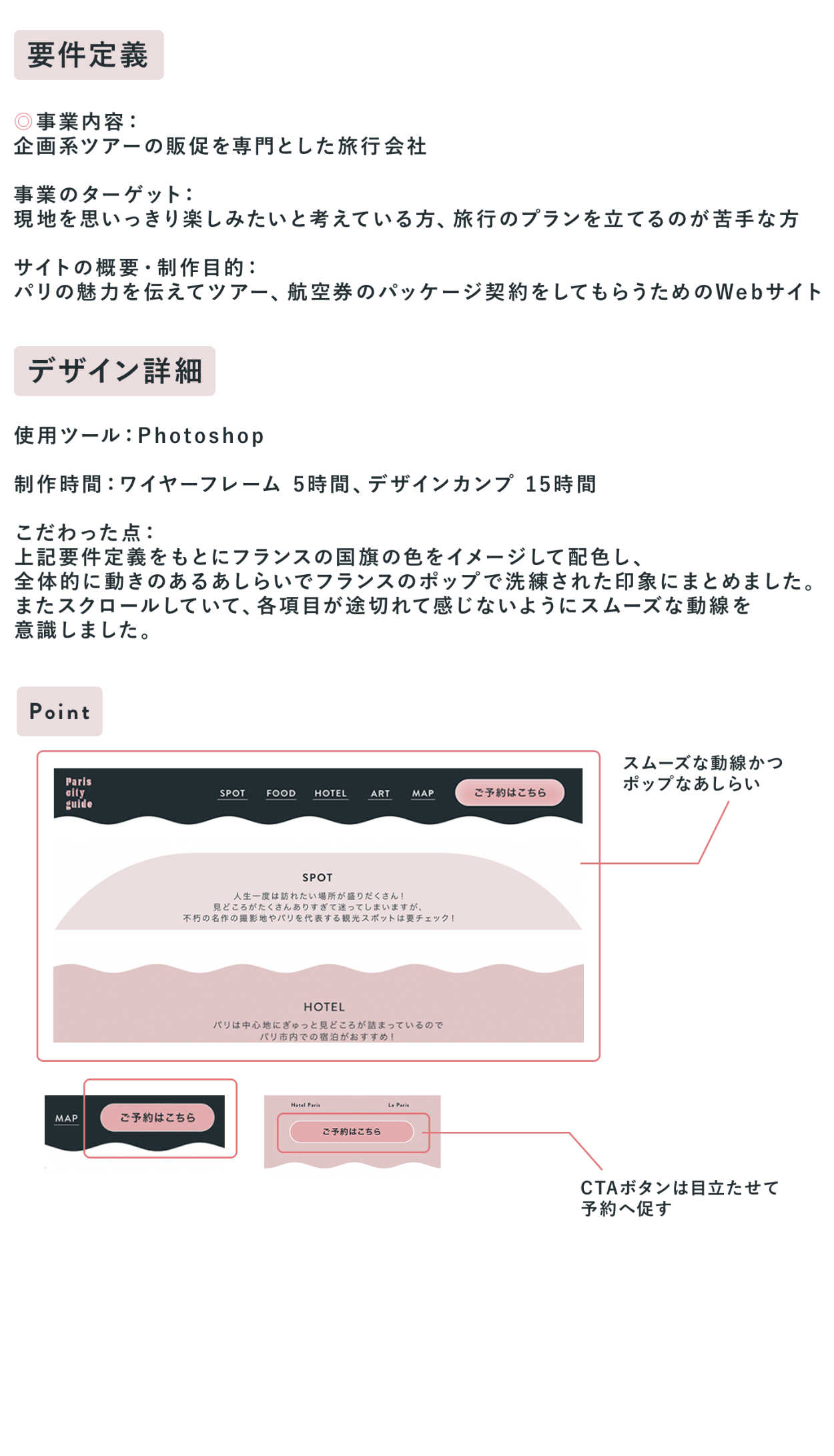 架空のパリ旅行ガイドのデザインカンプを制作しました。