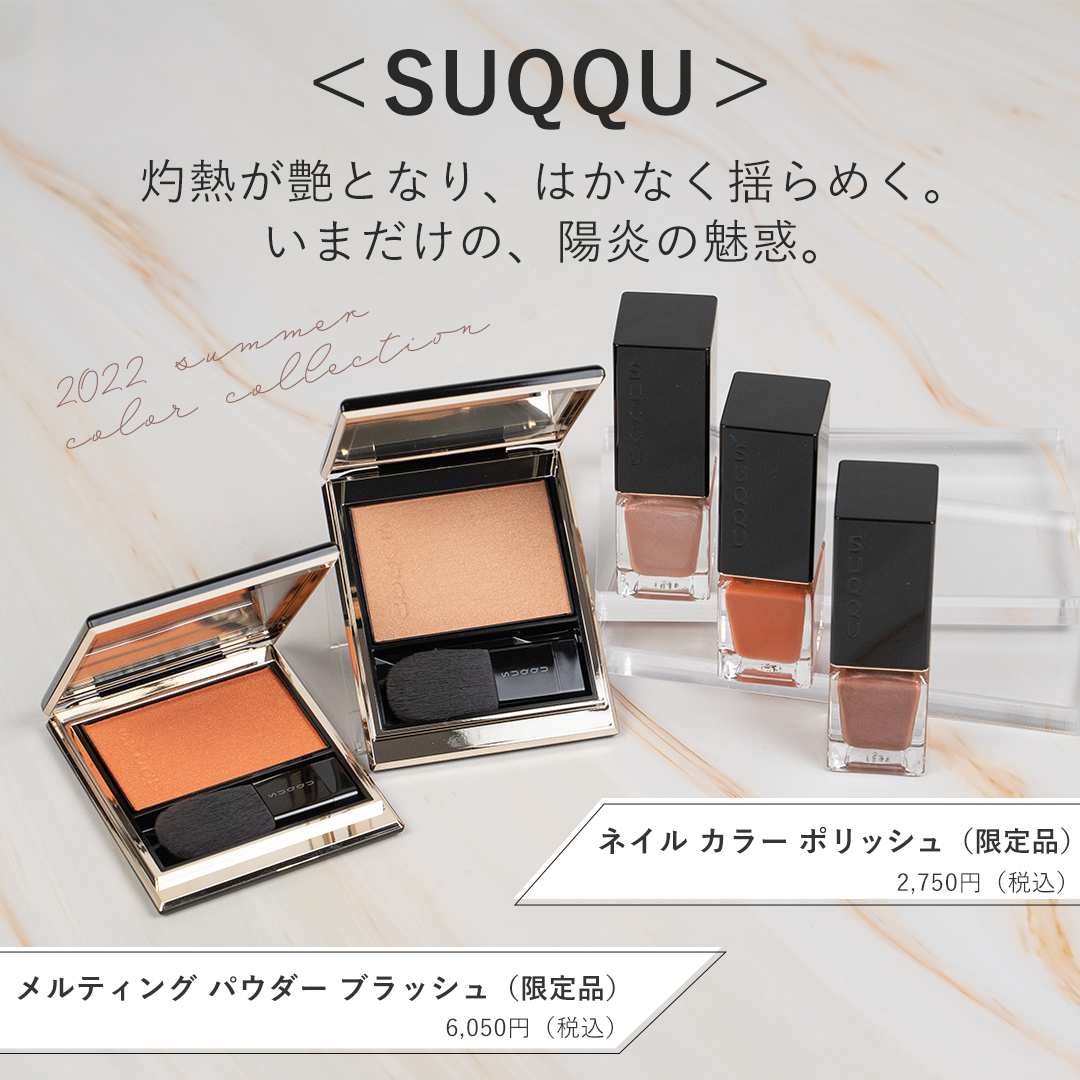 ブランドの顧客様、および三越伊勢丹meeco様を日頃よりご覧になっているコスメ好きなお客様に向けて、1〜2枚目で【<SUQQU>2022年夏のコンセプト】を伝え、新たなシーズンへの期待感を煽るようにしました。 - 販促担当者目線で画像の順番を考え、単価の高いチークを先に掲示→プラスワンアイテムとしてネイルカラーを打ち出すようにしました。