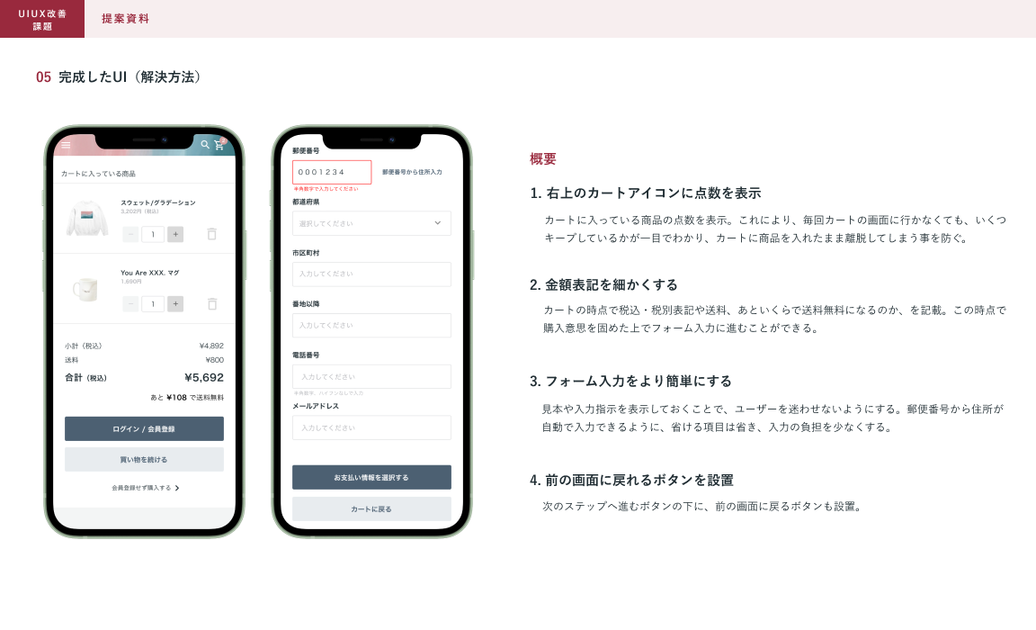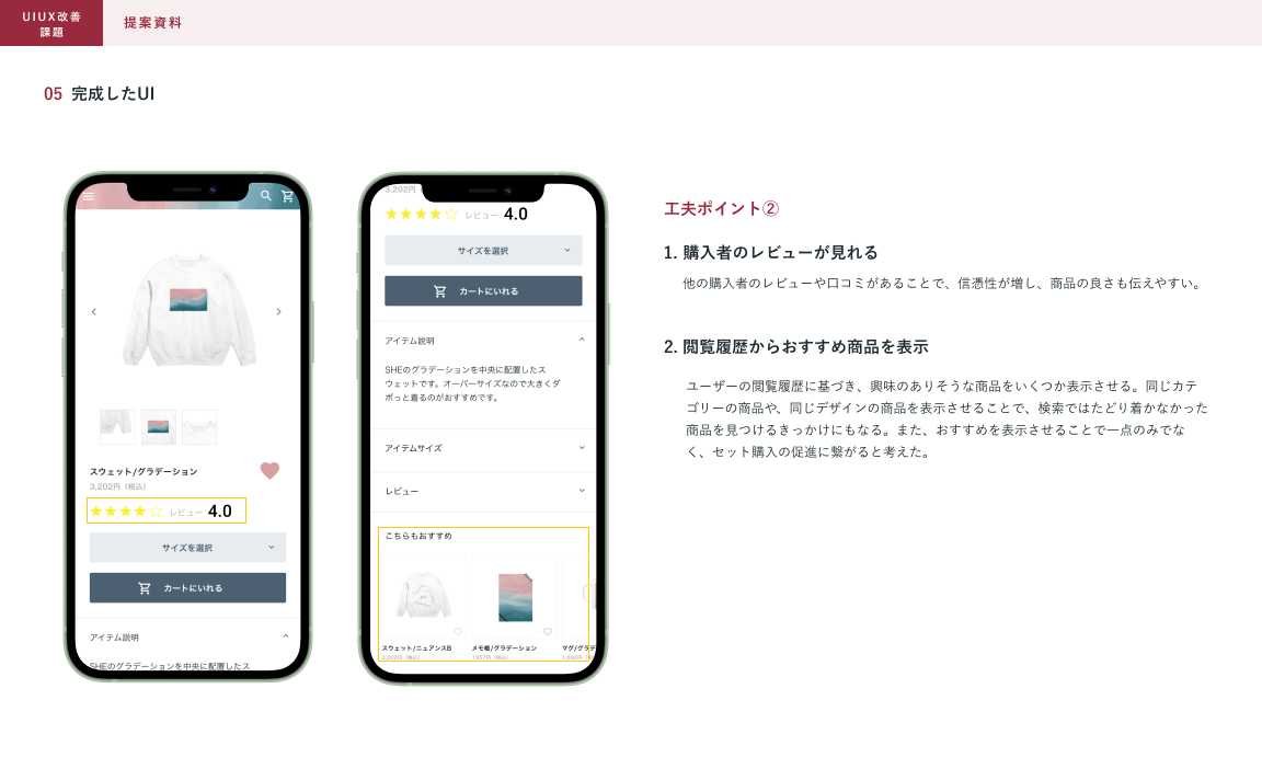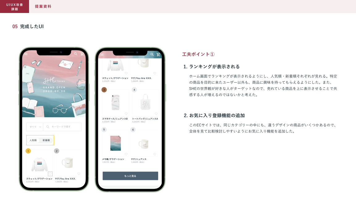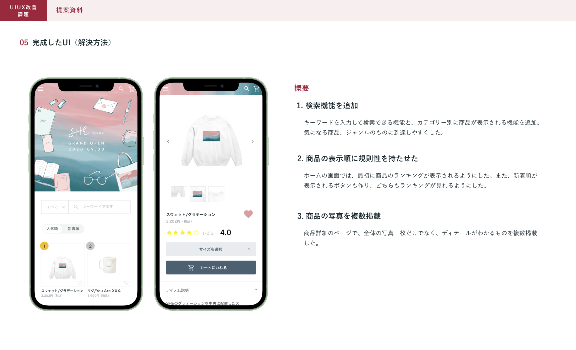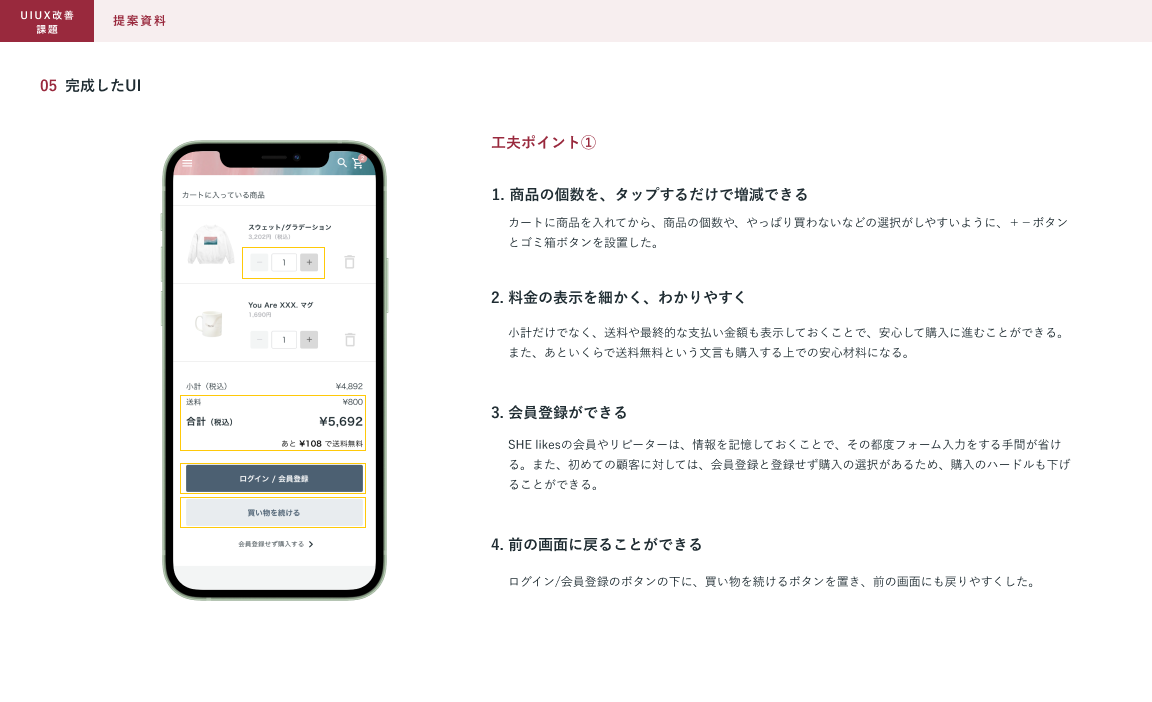 SHElikes MULTI CREATOR COURSEの課題で、架空ECサイトのUI UX改善を行いました。クライアントが感じている課題に対し、デザインカンプ・提案資料を作成しました。(制作時間: 12時間/使用ツール: Figma)