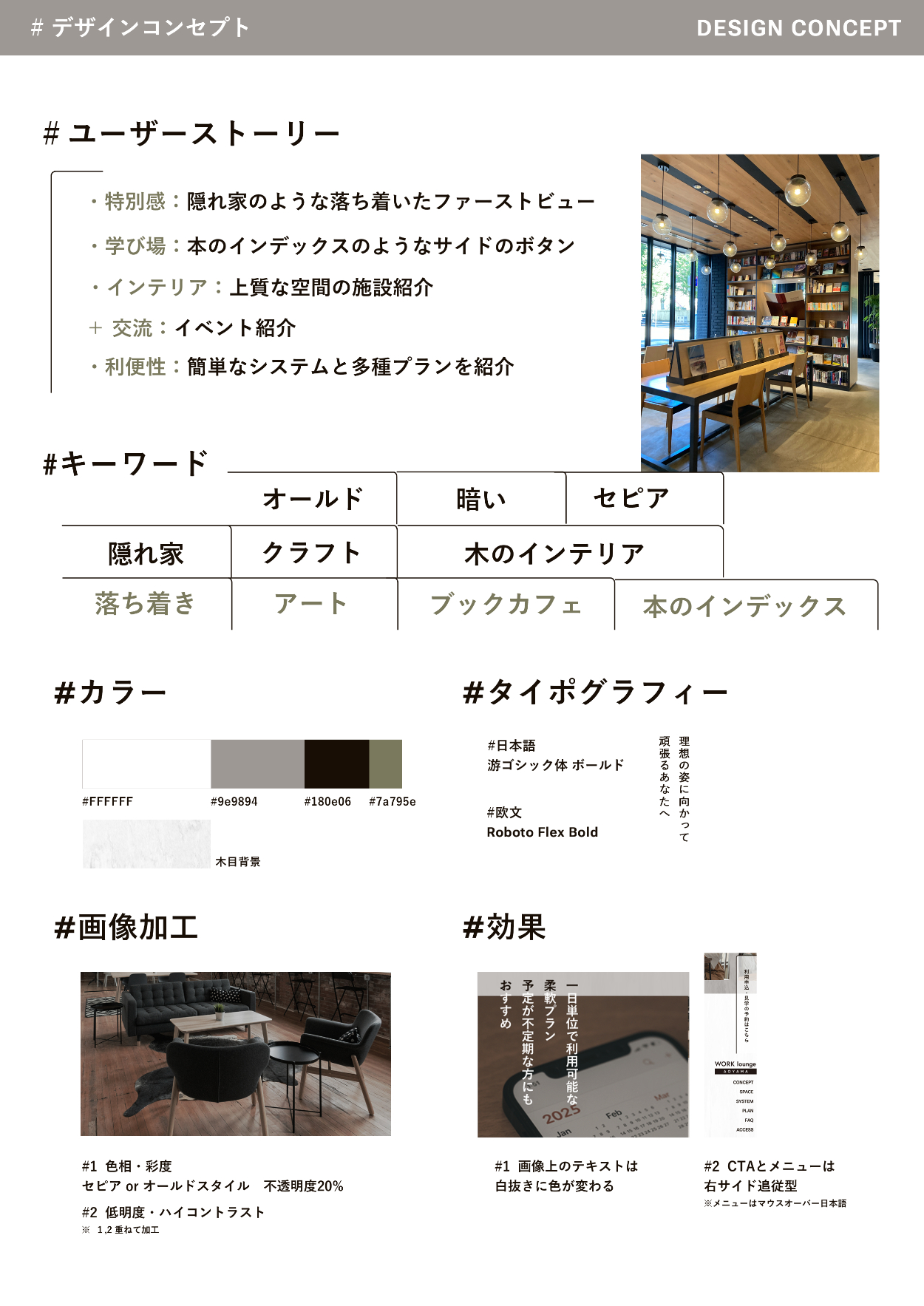 【デザインスクール課題】架空クライアント(コワーキングスペース)の依頼内容をもとに、PCサイトのデザインカンプ制作。