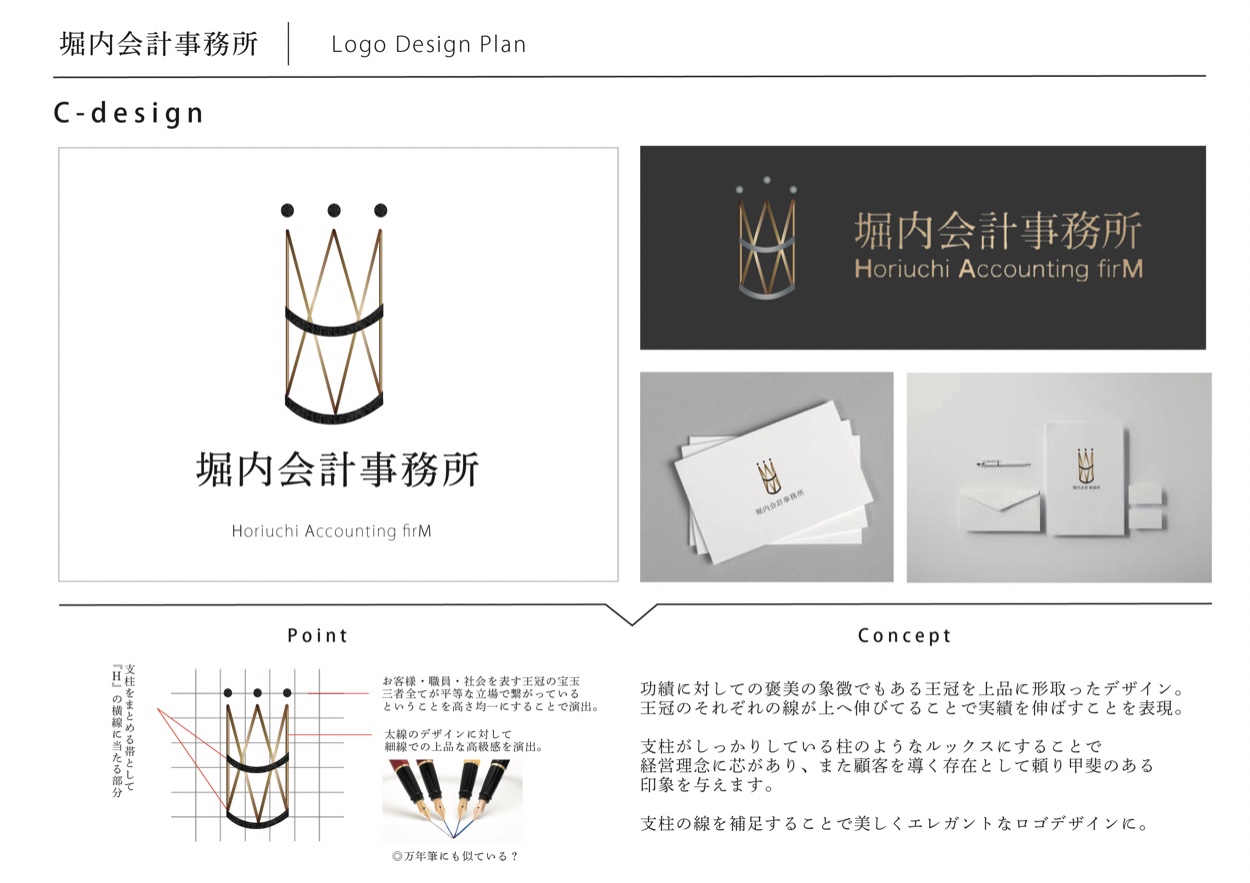 会計サポートだけでなく目標達成への手助けを行う会計事務所であるため、信頼と高級感を生み出すデザインに仕上げました。
