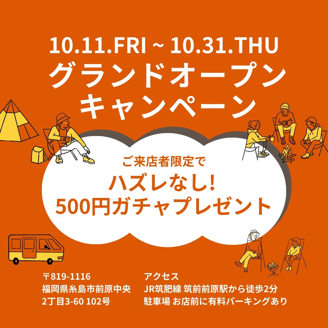 アウトドアブランドの展示場グランドオープンの告知バナー iyou OVERVIEW SNS販促 YEAR 2024 アウトドアプランドの糸島展示場オープンに用いるSNS広告を制作しました。(LINE、X、Instagram、自社サイトに掲載)