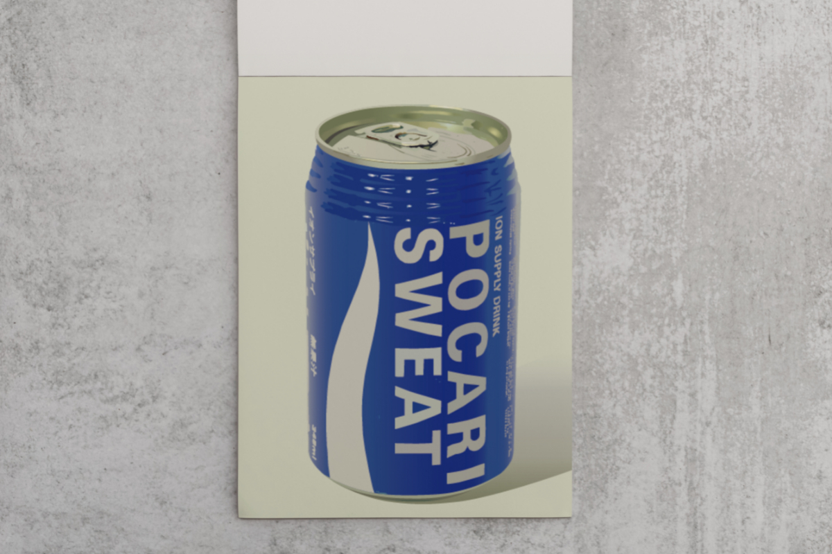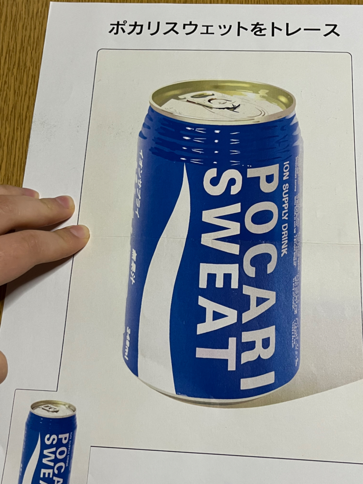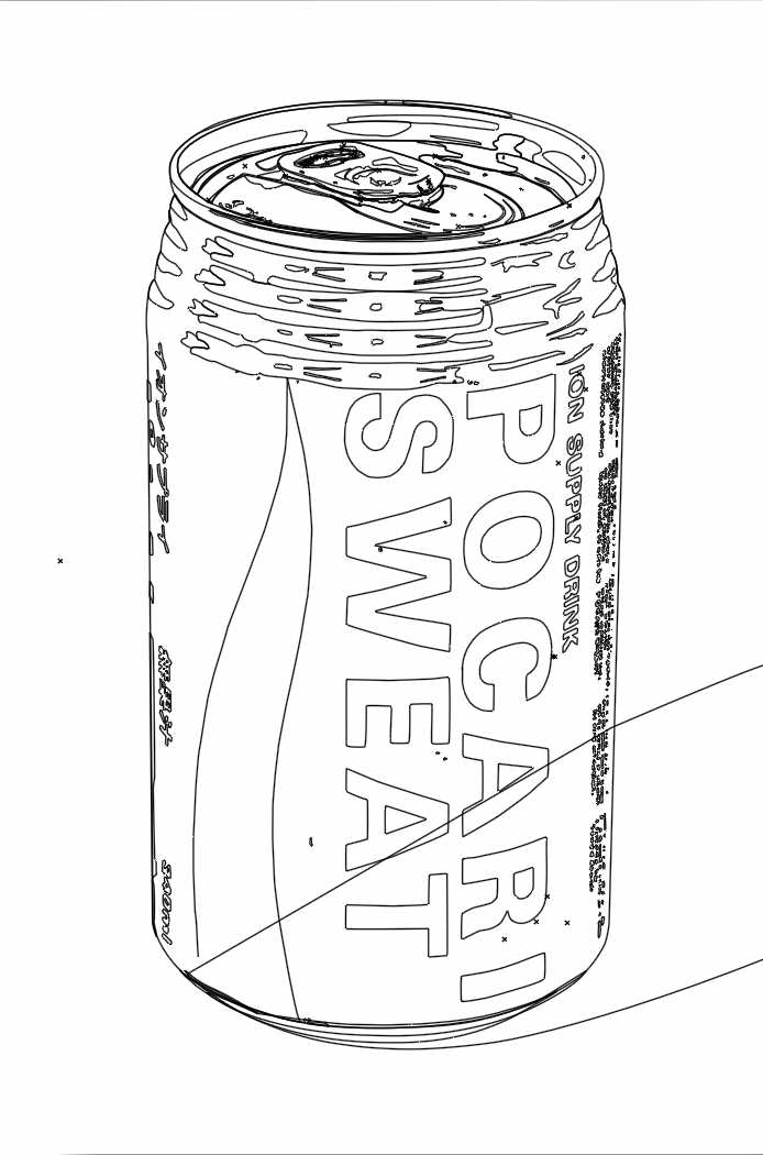 缶の質感を表現するにはやはり光の当たっている部分に特に力を入れた方がより再現度が上がるのではないかと思い、見本の写真をじっくり見て光の一つも見逃さず細かいところまでトレースしました。それだけではなく、一つ一つのその光にもグラデーションをかけているのでより違和感なくできたのではないかと思います。缶の右側にある細かい文字の部分は一つ一つのパーツがすごく小さく、トレースしにくかったのですが根気強く最後まで頑張りました。