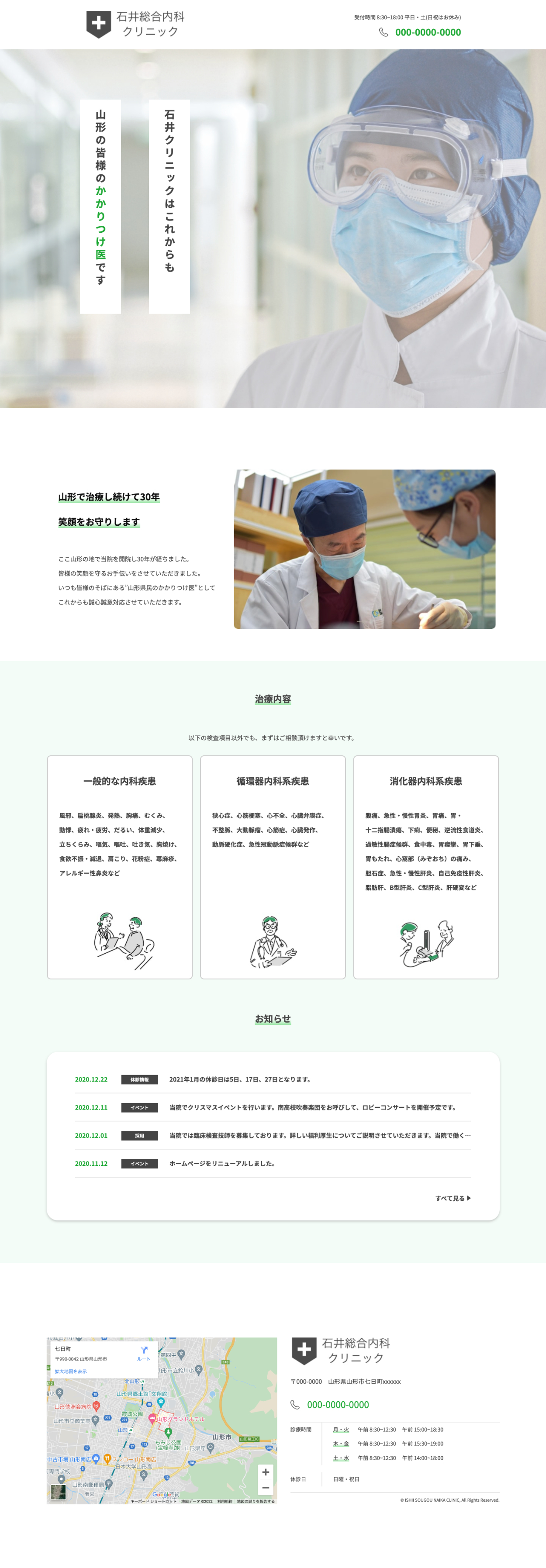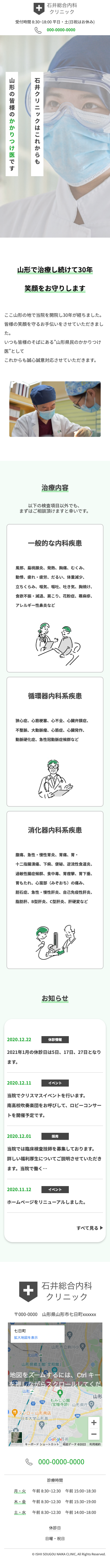 Xdデザインデータからコーディングを担当しました。 石井総合内科クリニックという架空のクリニックのホームページとなっています。