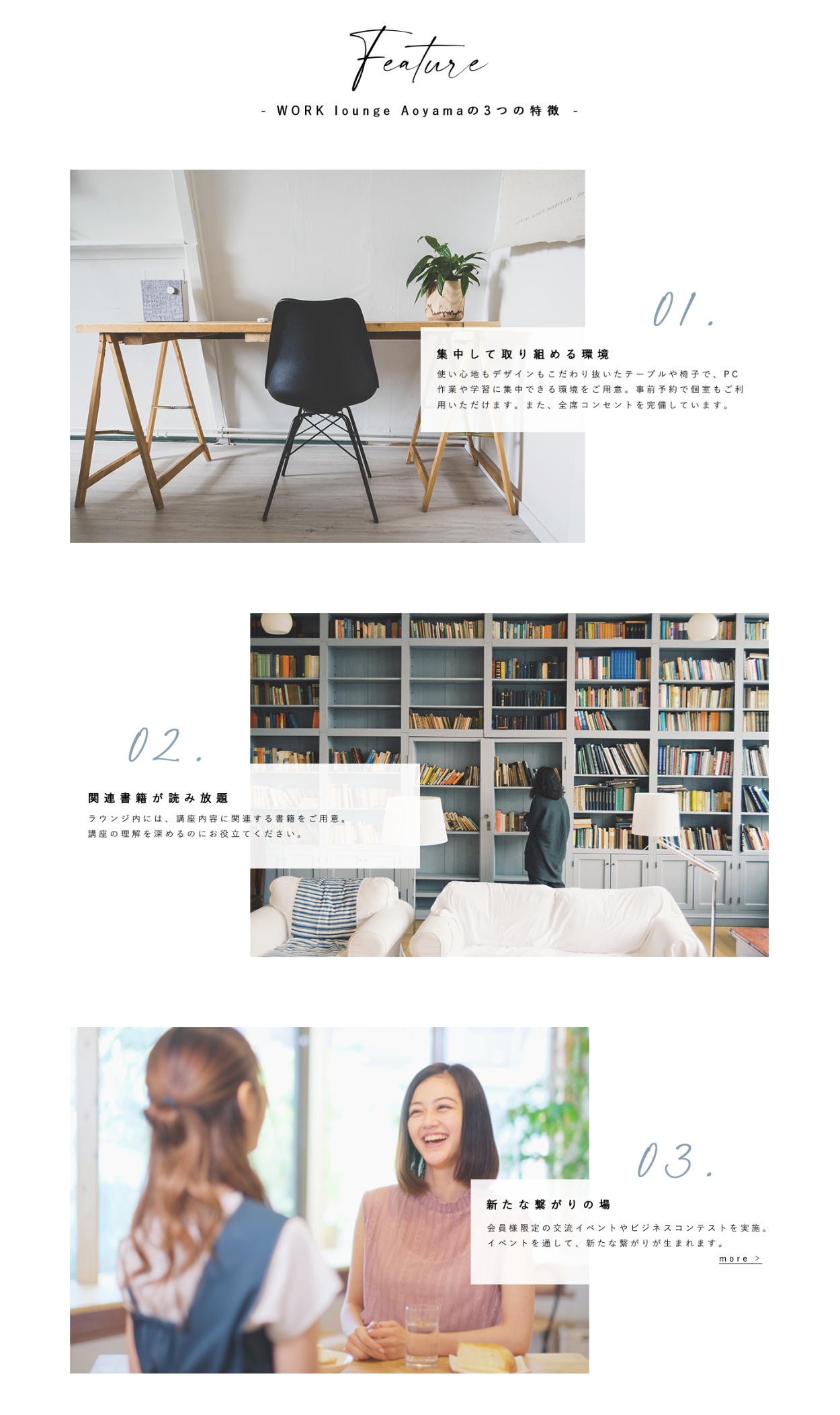 WORKSの会員ではないユーザーに対して他のコワーキングスペースとの差別化を図るべく、特徴の項目を足しました。