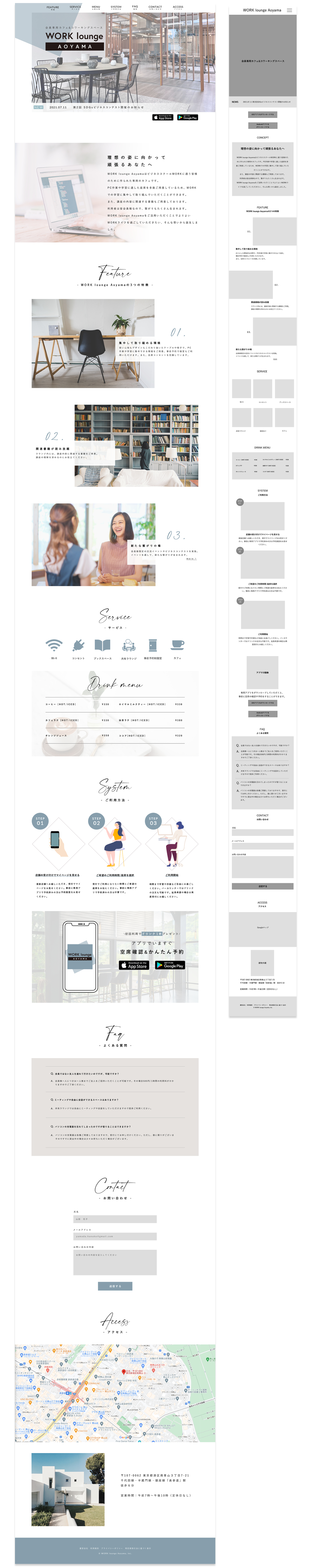 SHElikes MULTI CREATOR COURSEの課題制作で、コワーキングスペースのLP制作に取り組みました。ワイヤーフレームからデザインカンプとSPワイヤーフレームを制作しました。 制作時間:7日間(14時間) 制作時期:2021年6月