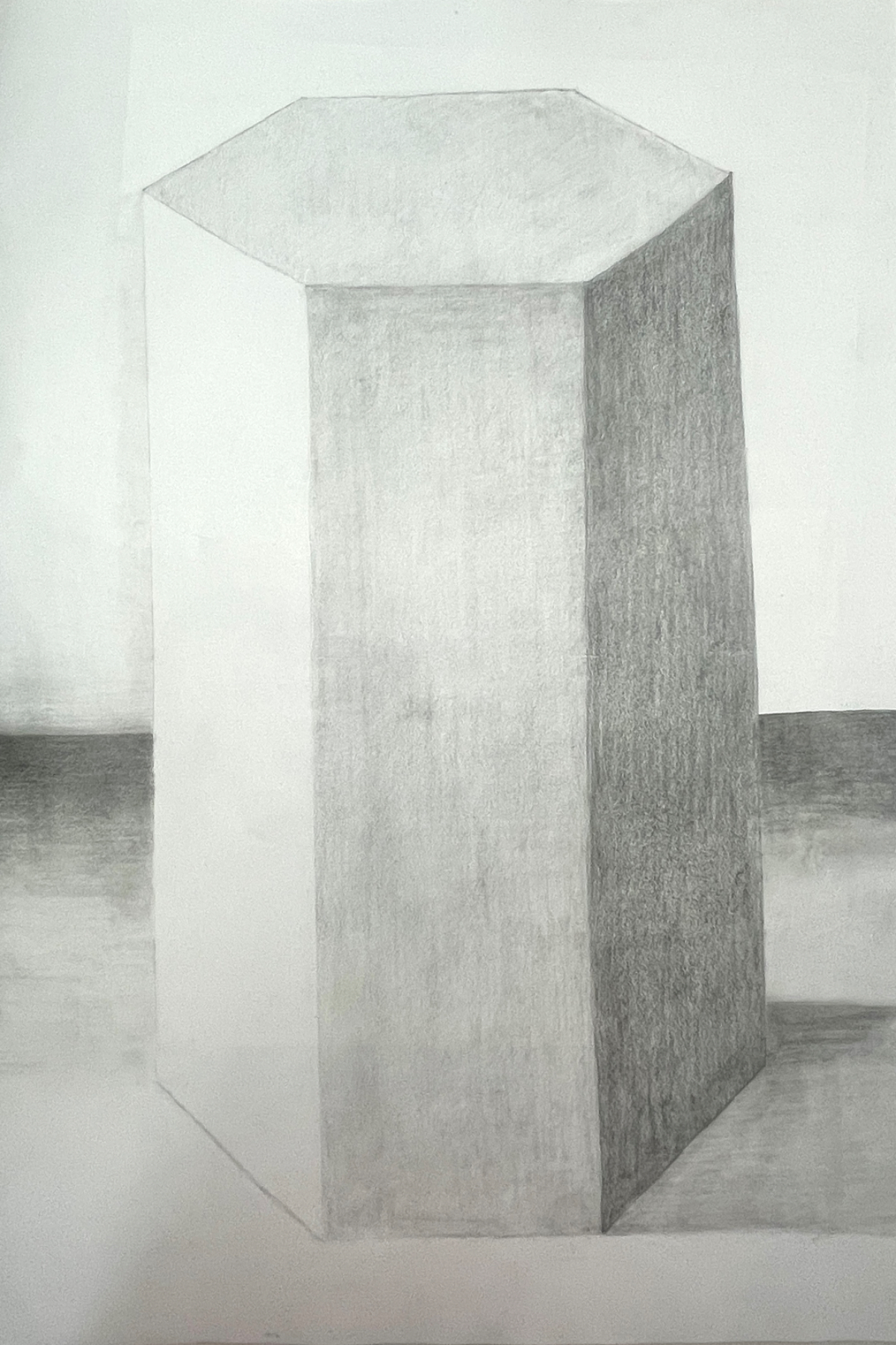 スポークという細長い棒を使って六角柱の長さを測りながら描きました。