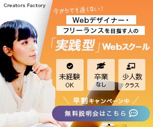 情報量が多いのでアイコンを活用し、まとめました。実際のスクールのサイト(Creators Factory)の雰囲気に合わせつつ、ターゲットに男女を選ばないデザイン・配色を心がけました。