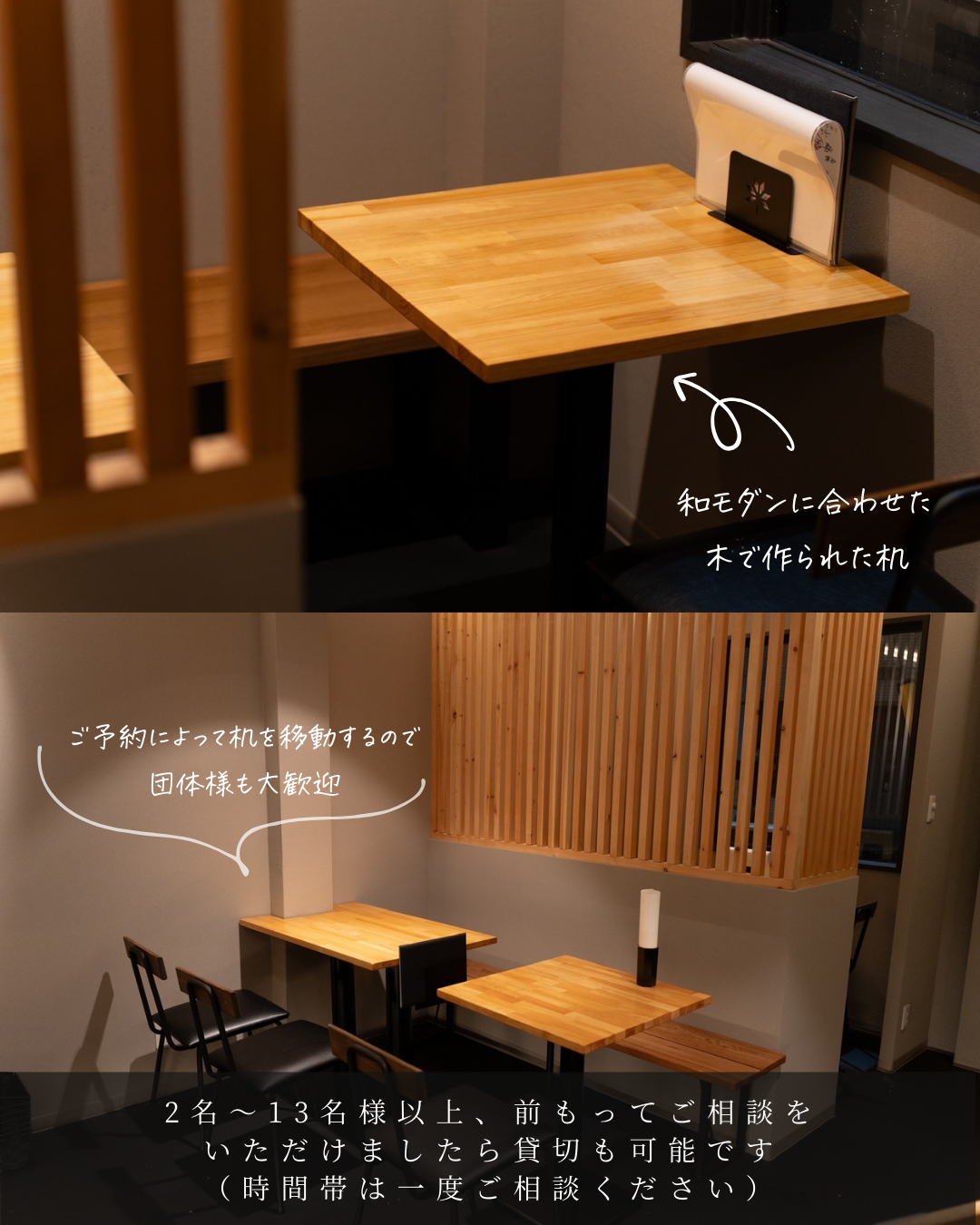 - 大人数や貸切にも対応可能であることを黒帯の透明度を調整し視認性を上げて見やすくしています。