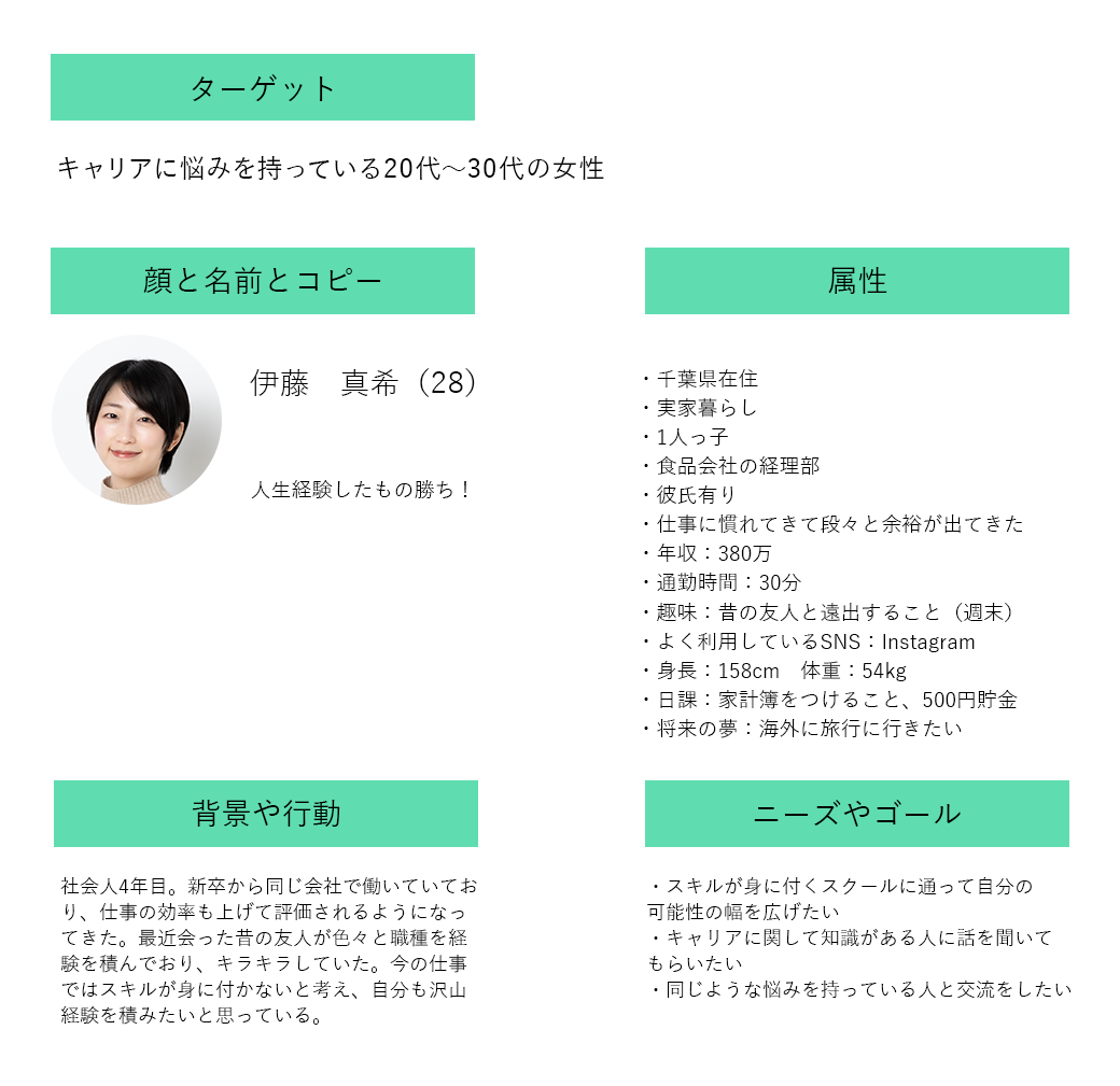 自分で考えたターゲットからペルソナを設定し、さらに深堀をしました。