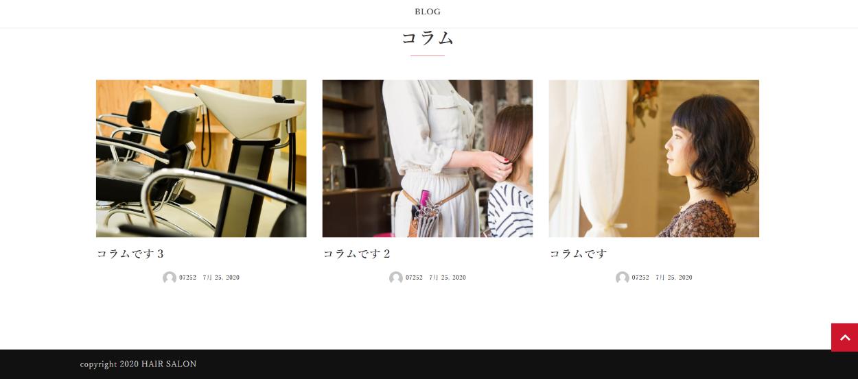 架空Hair Salonサンプルサイト制作 Kikuchi Haruka Web制作 OVERVIEW WordPress(ワードプレス)を使用し、美容院のサンプルサイトを制作しました。 YEAR 2021
