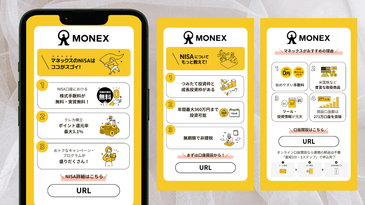 「NISA詳細はこちら」「まずは口座開設から!」と、行動を促す文言を入れ、次アクションがひと目でわかるようにしました。