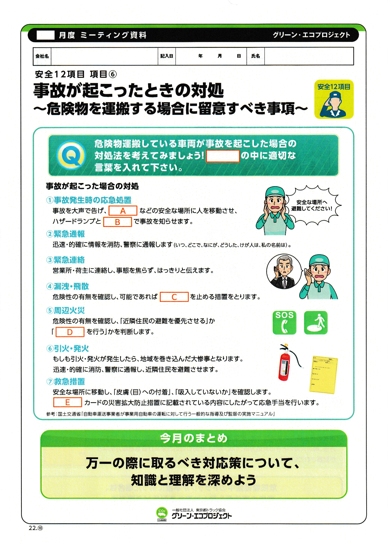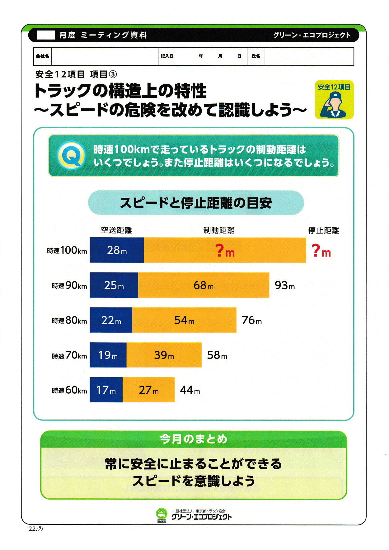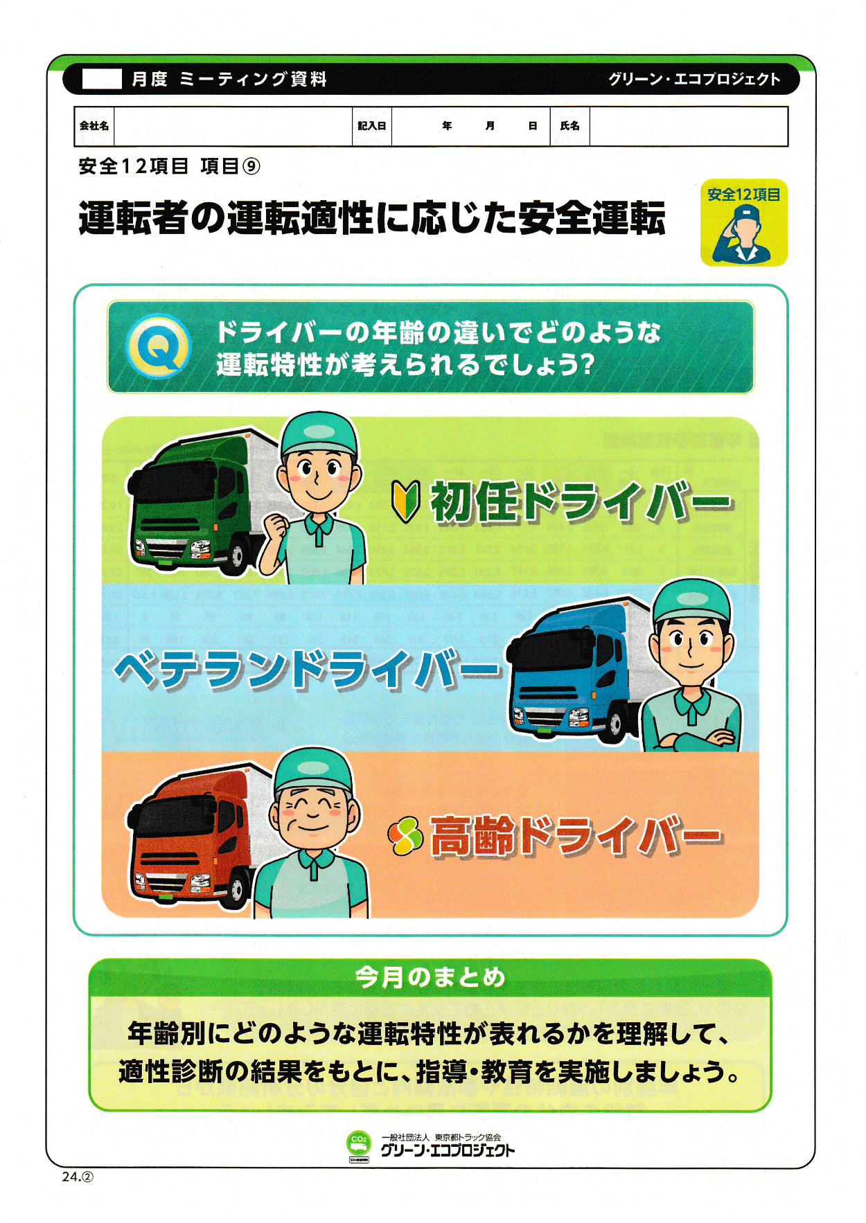 ドライバーの、安全意識の向上を目的とした A4両面の教育資料 を制作しました。