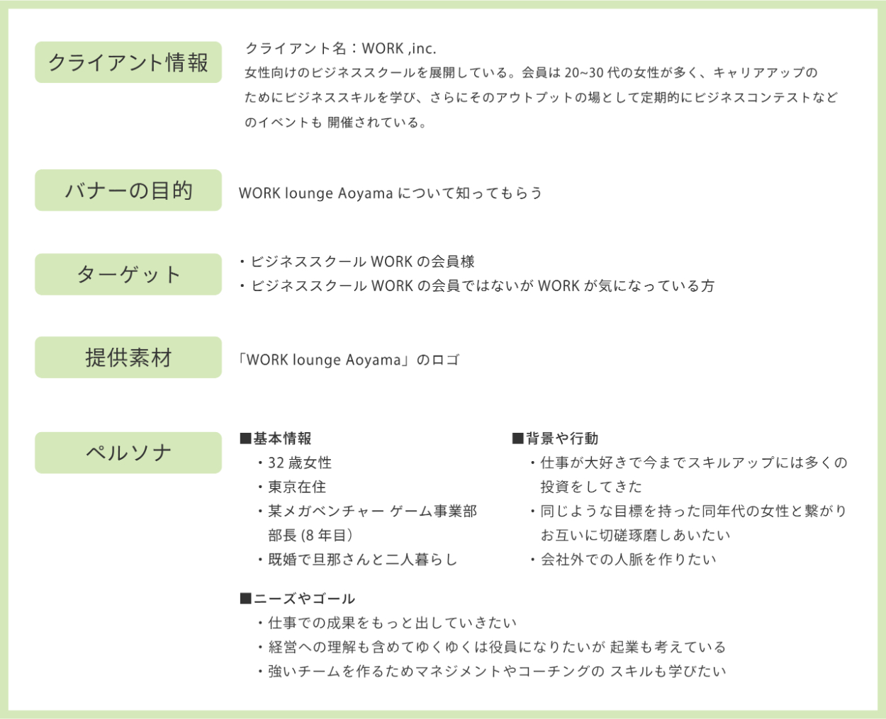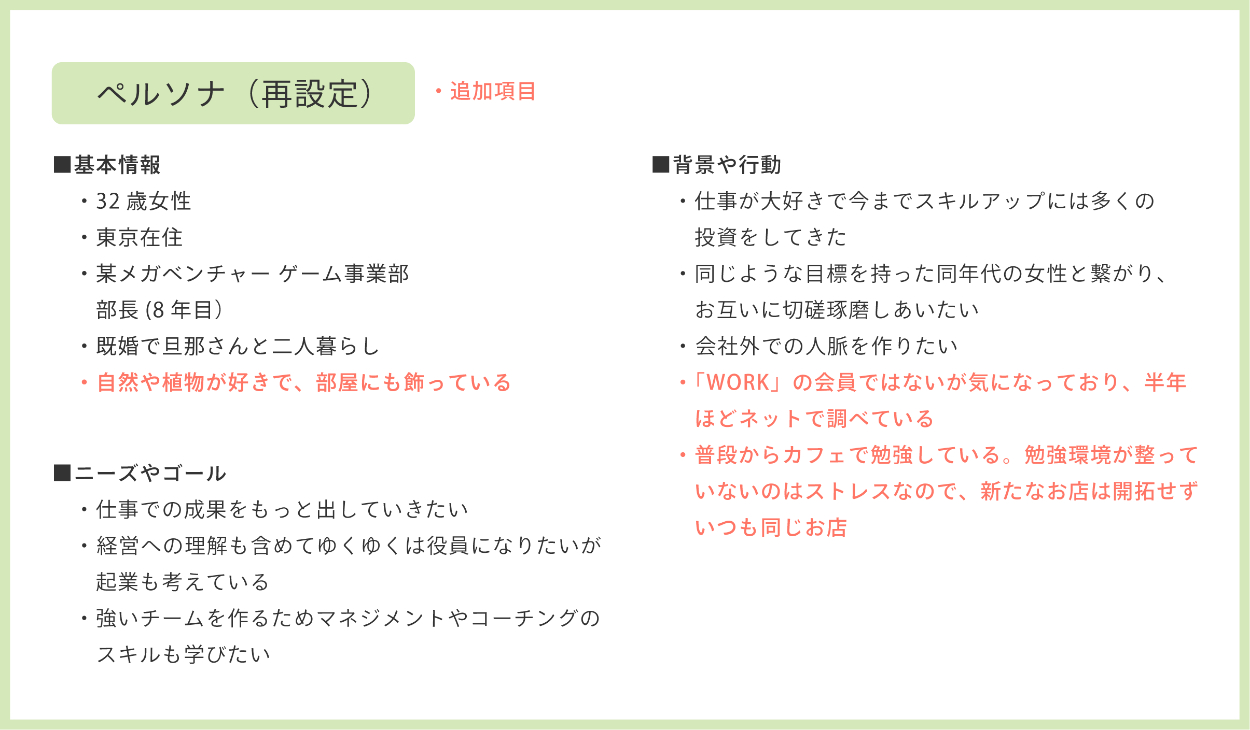 上記のペルソナをより鮮明にするためにペルソナを再設定し、3つの内容を追加しました。