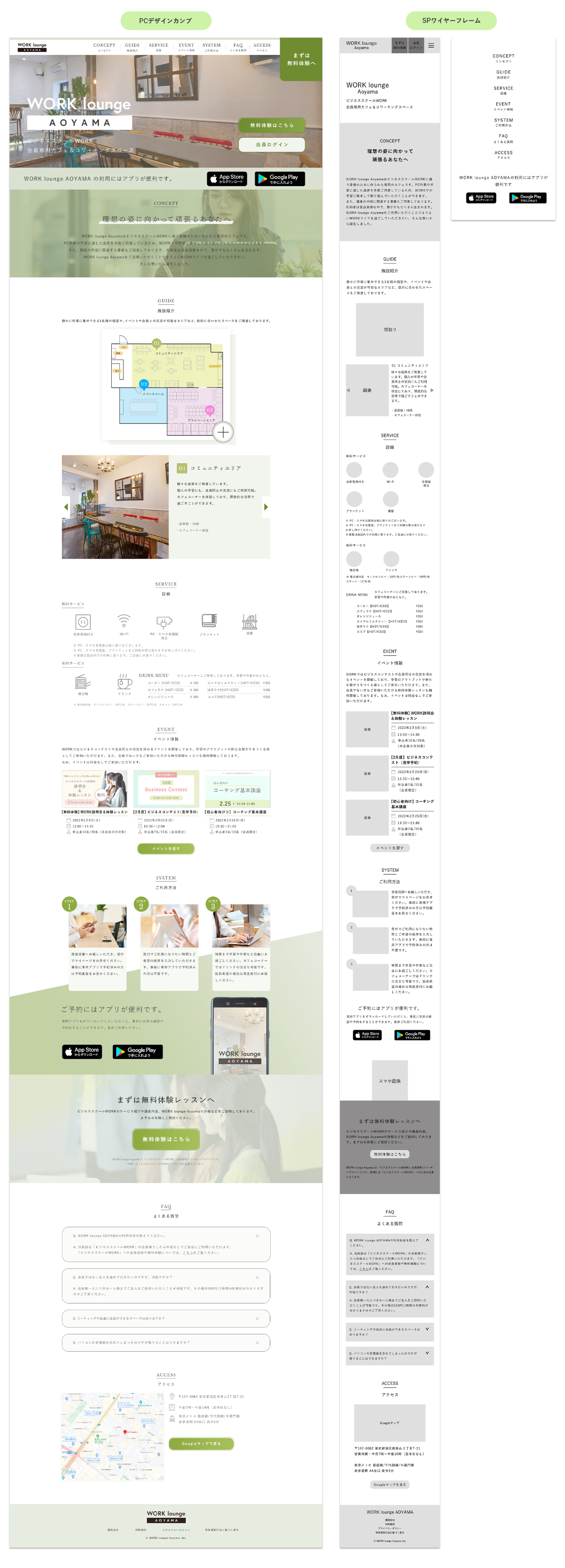SHElikes MULTI CREATOR COURSEにて、LPデザインに取り組みました。提示されたPC版ワイヤーフレームを修正した上でデザインカンプを作成。また、SP版のワイヤーフレームも作成しました。(使用ツール:Photoshop)