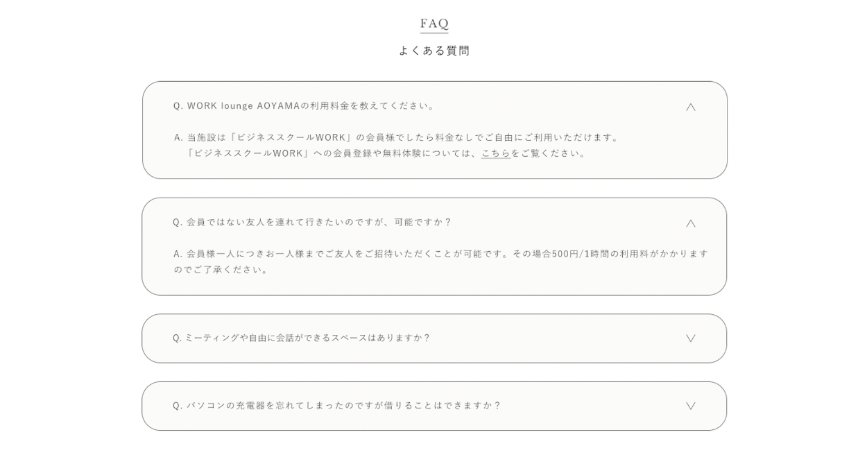 元のワイヤーフレームに会員の施設利用の料金について明記がなかったため、FAQに記載しました。