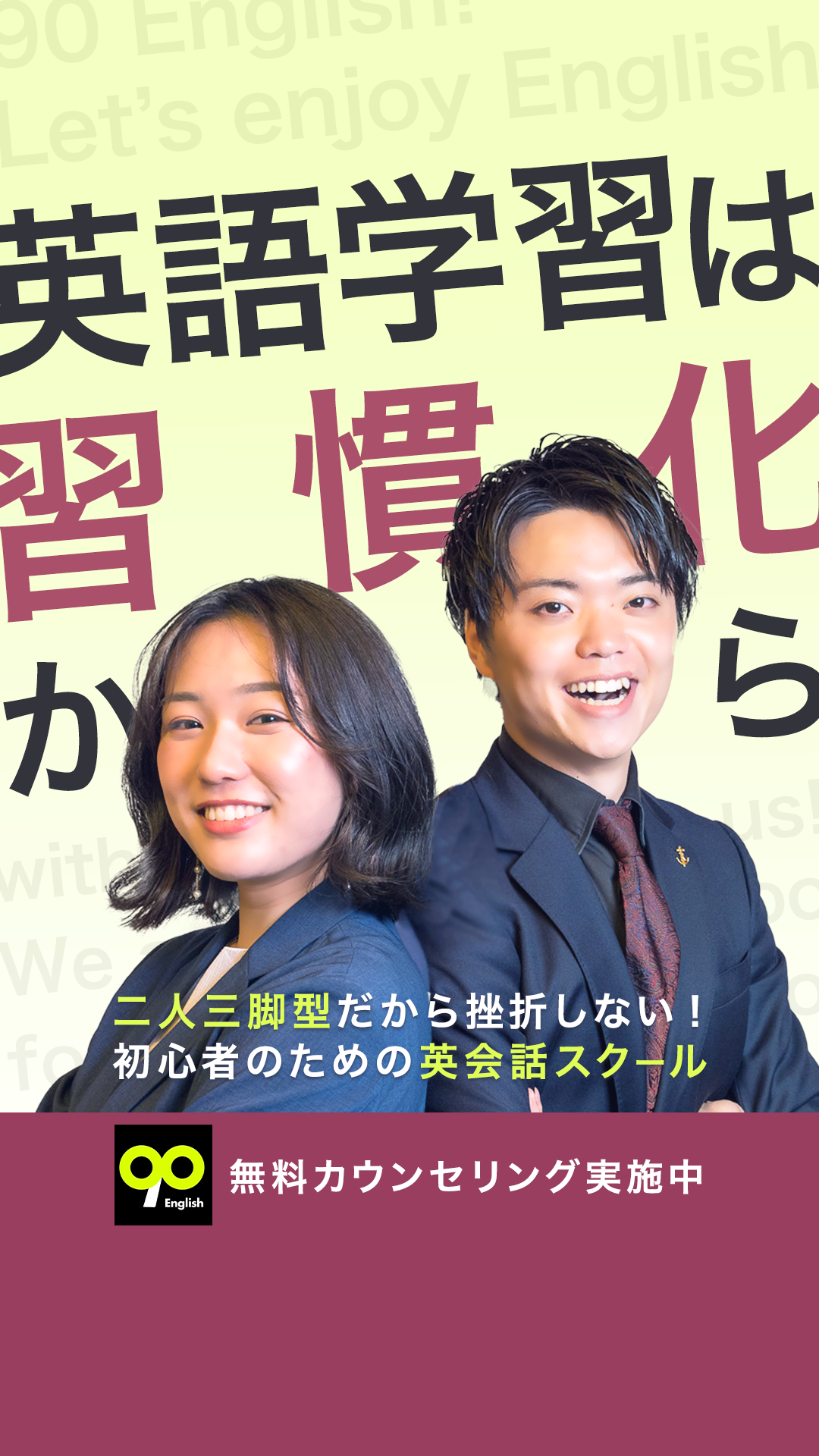 ・90English様が重視されており、また初学者が躓きやすいポイントである「英語学習の習慣化」という点をキャッチコピーに取り入れました。