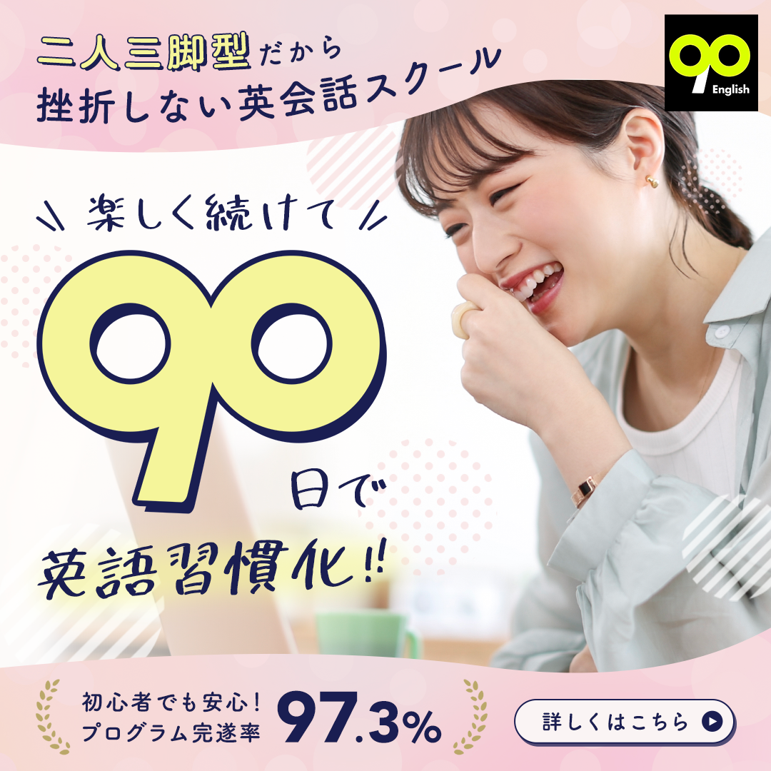 90株式会社様の英会話スクール『90English』の広告バナーを制作し、コンペに提出いたしました。結果、提出した2案のうち、1案採用いただきました。